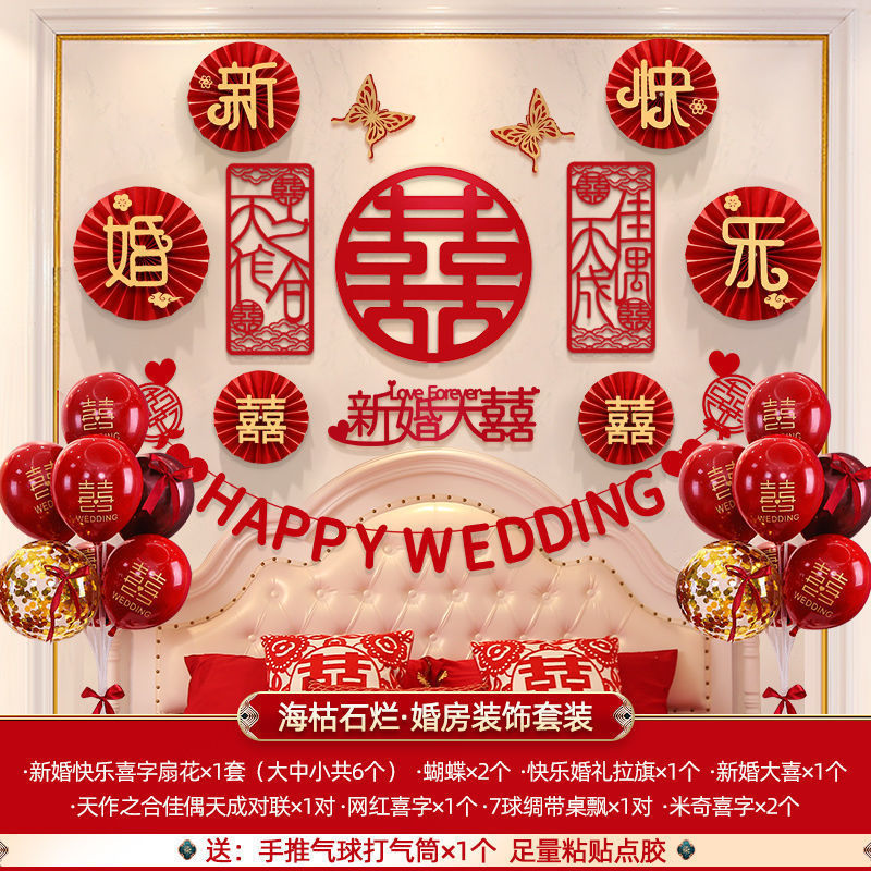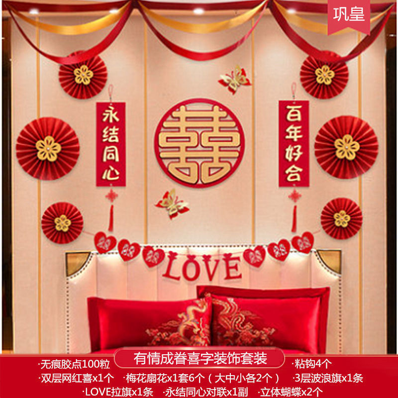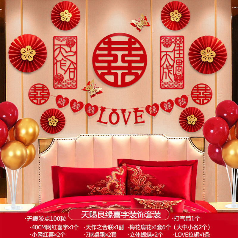 婚房布置套装批发结婚装饰男方女方卧室客厅背景墙拉花新房用品