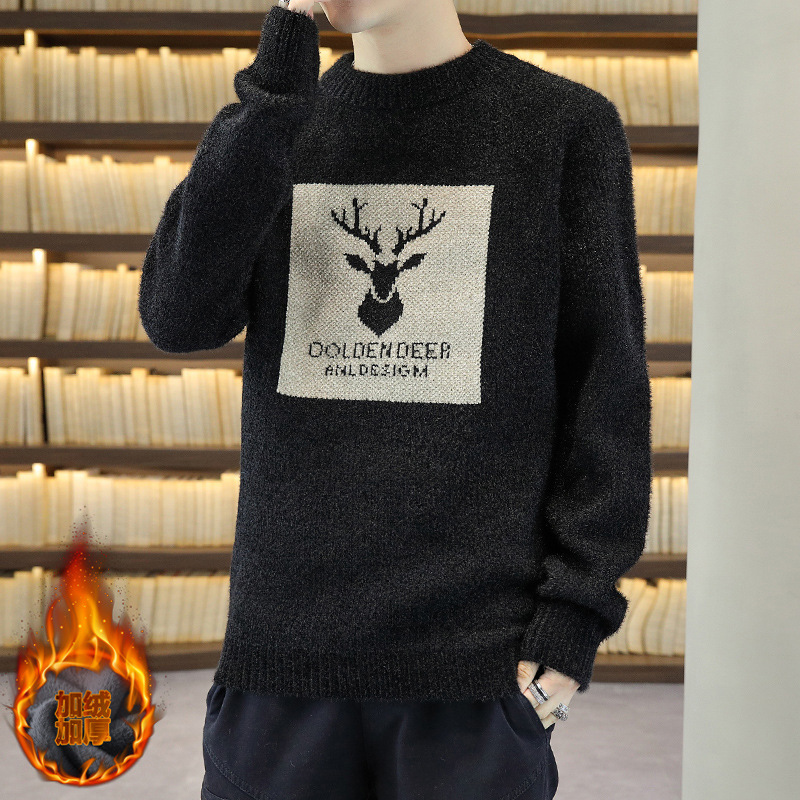 毛衣男装冬季2022新款针织羊毛衫加绒加厚青少年秋冬中学生保暖衣