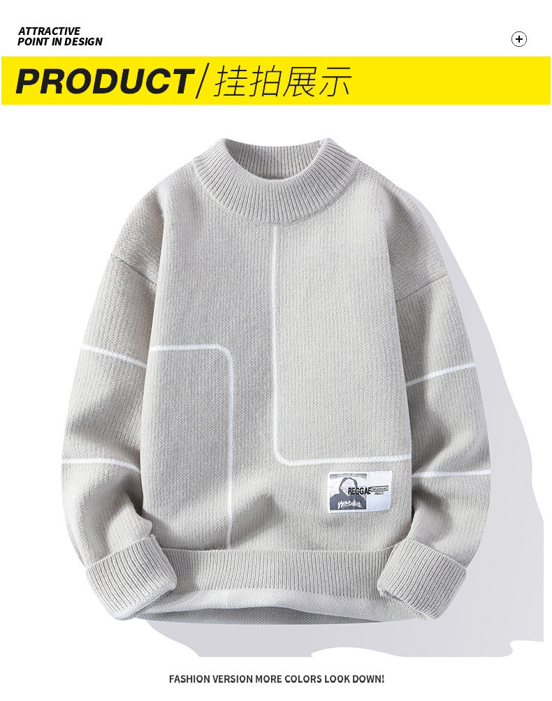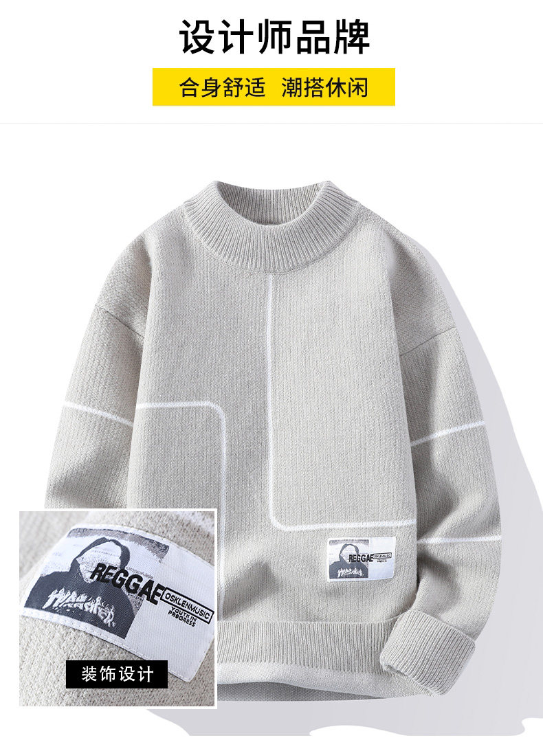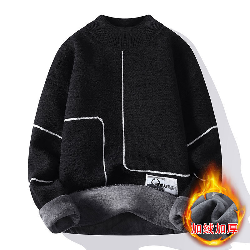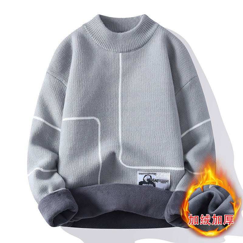 半高领毛衣男士秋冬季保暖加绒加厚内搭打底衫潮牌高中生针织线衣