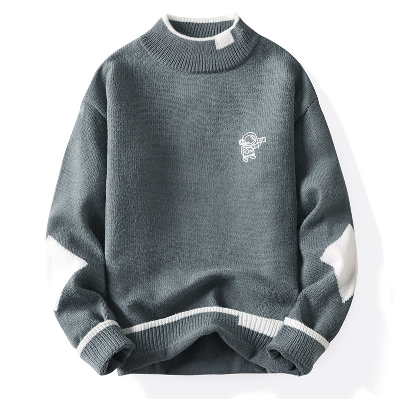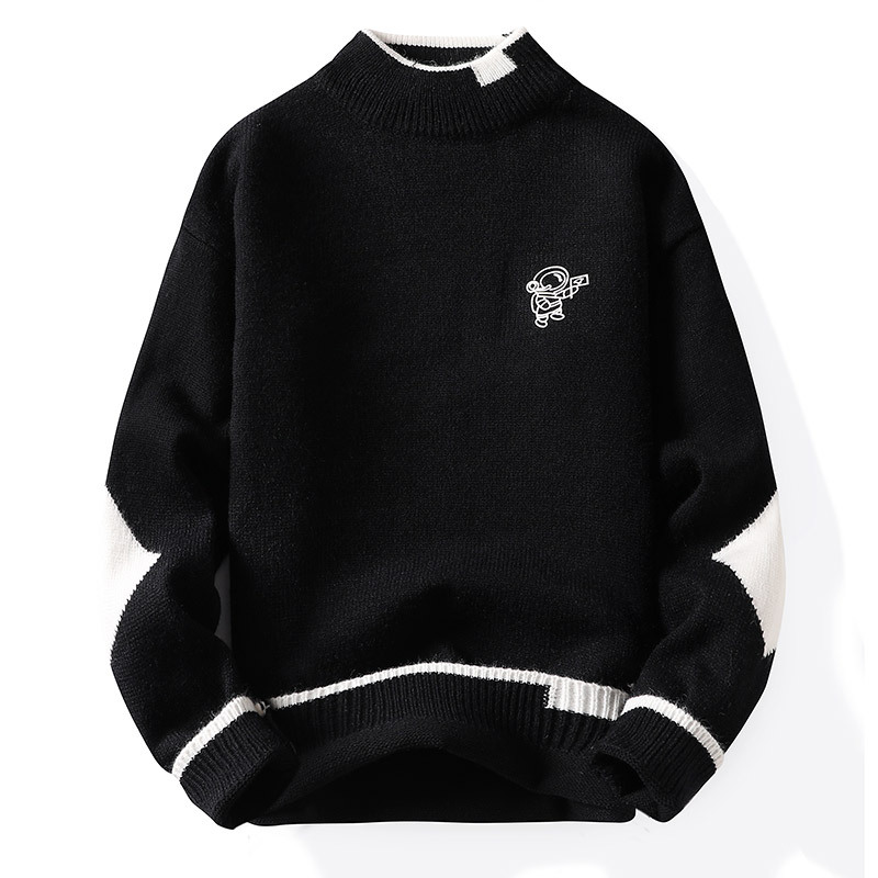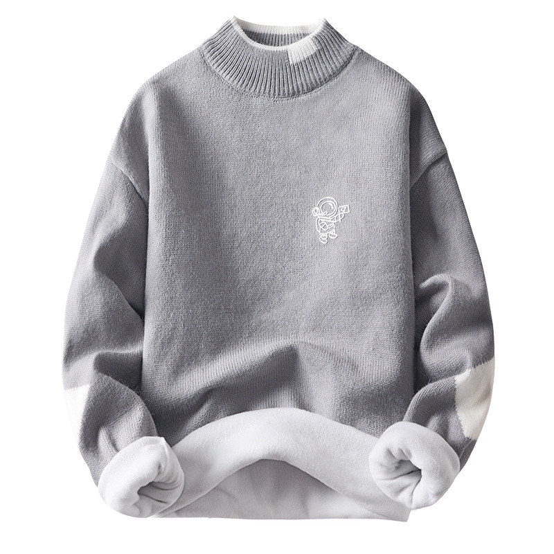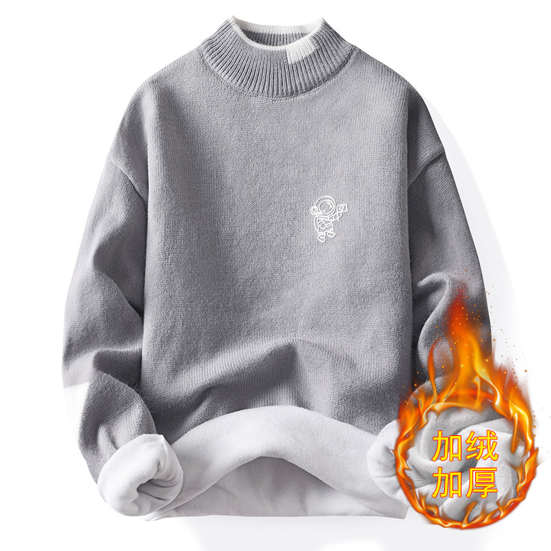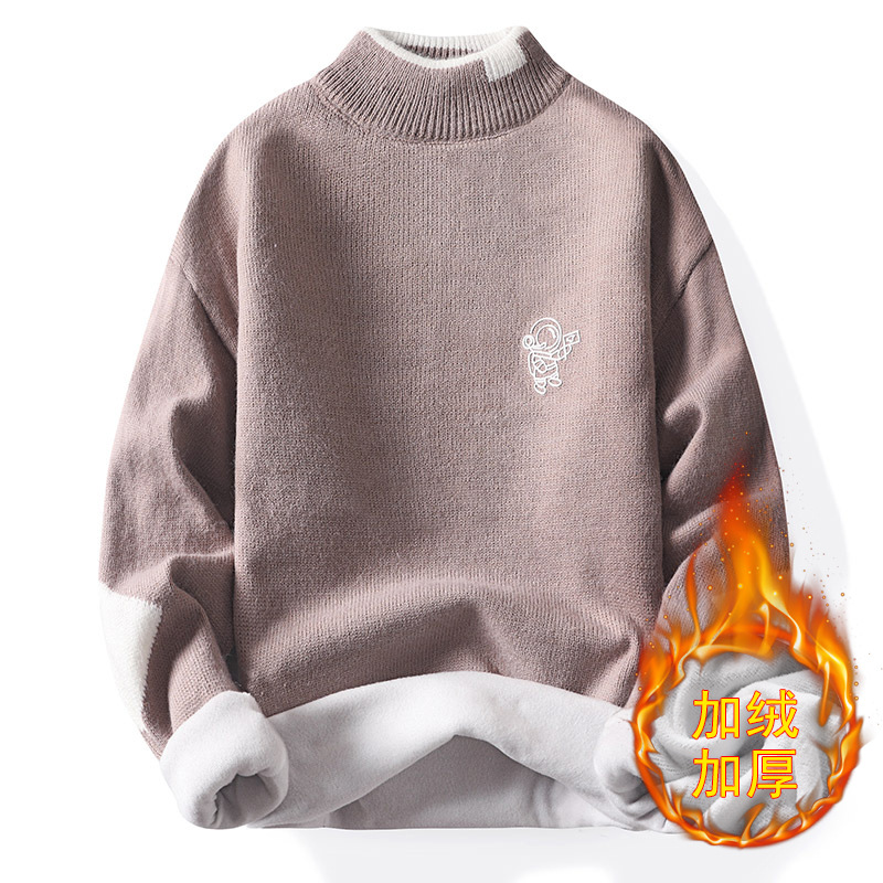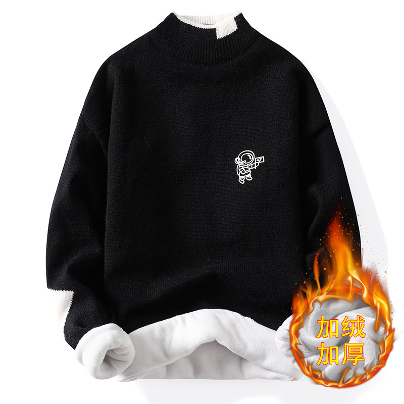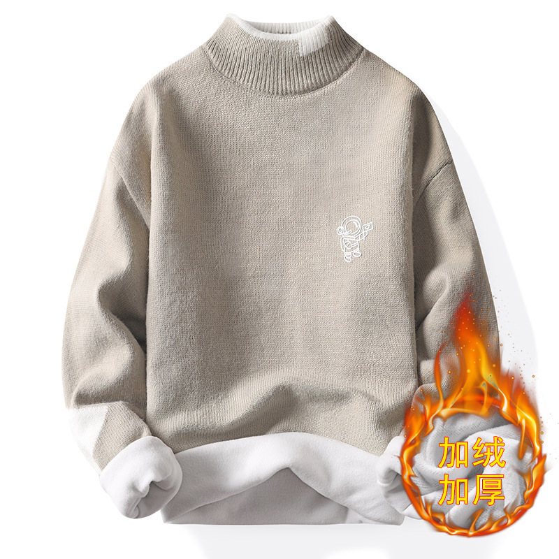 韩版潮牌青少年宽松半高领潮流ins加绒男士秋冬季新款针织衫毛衣
