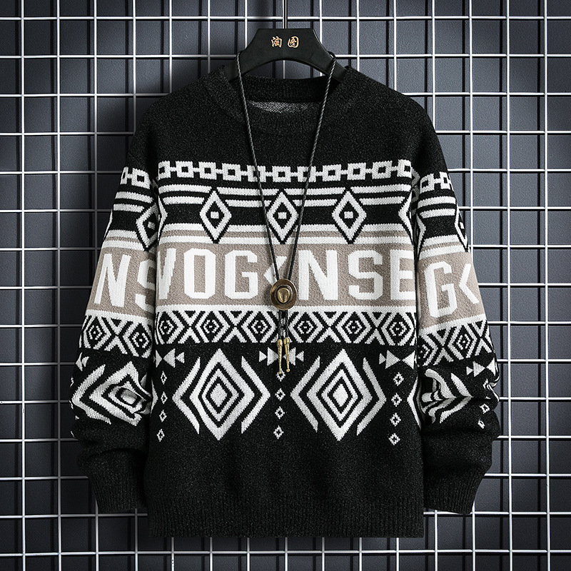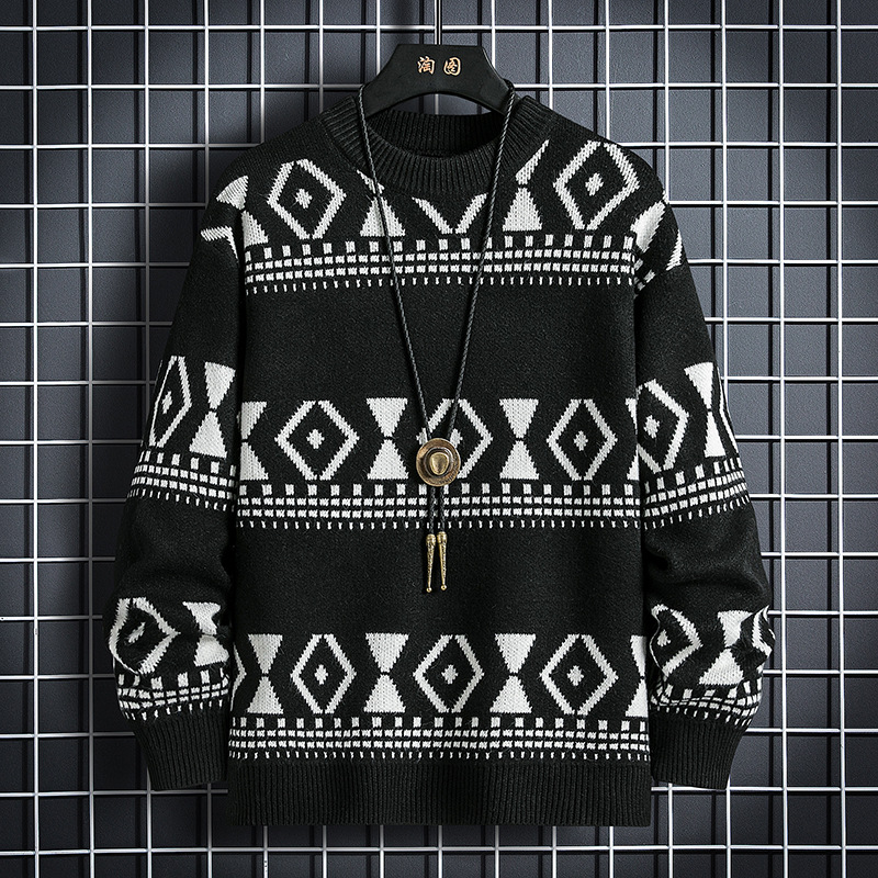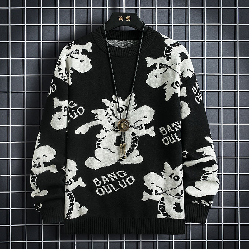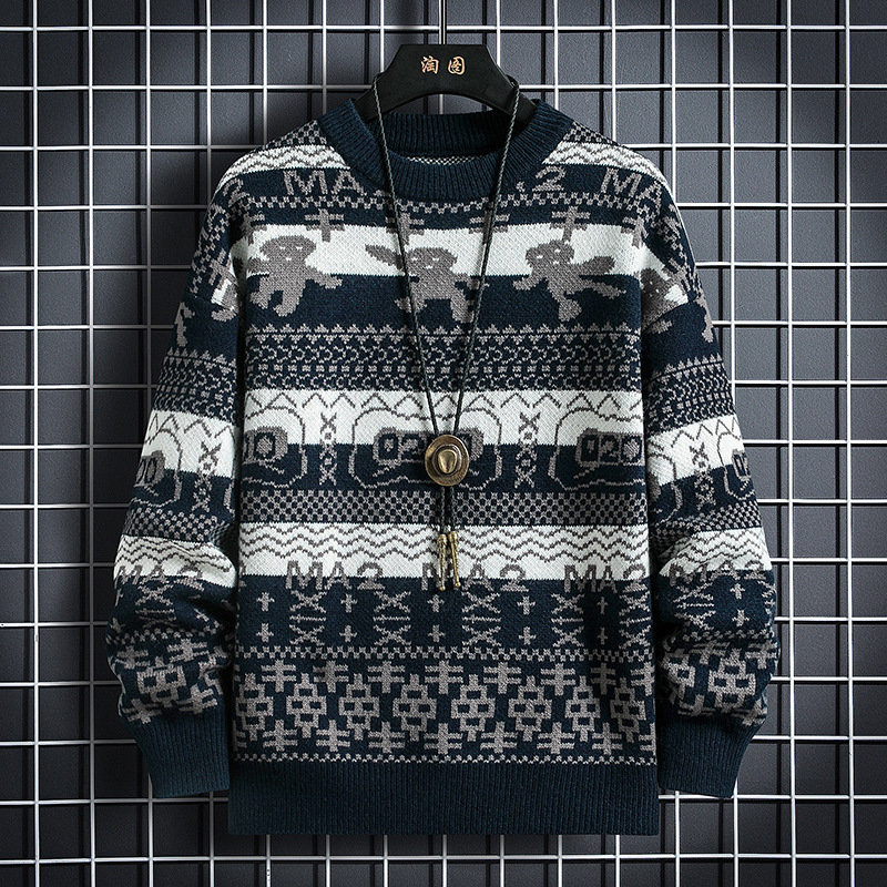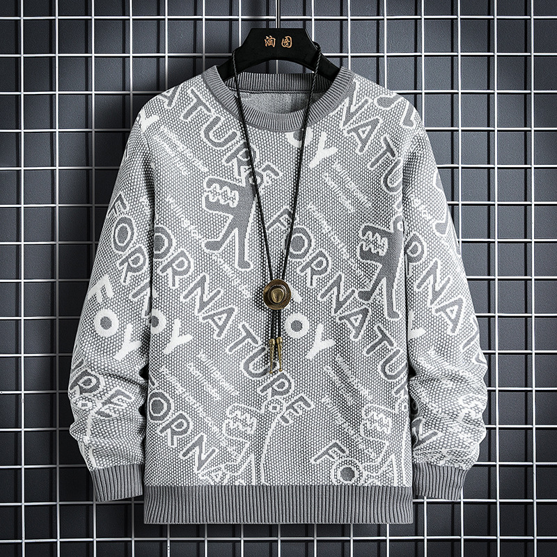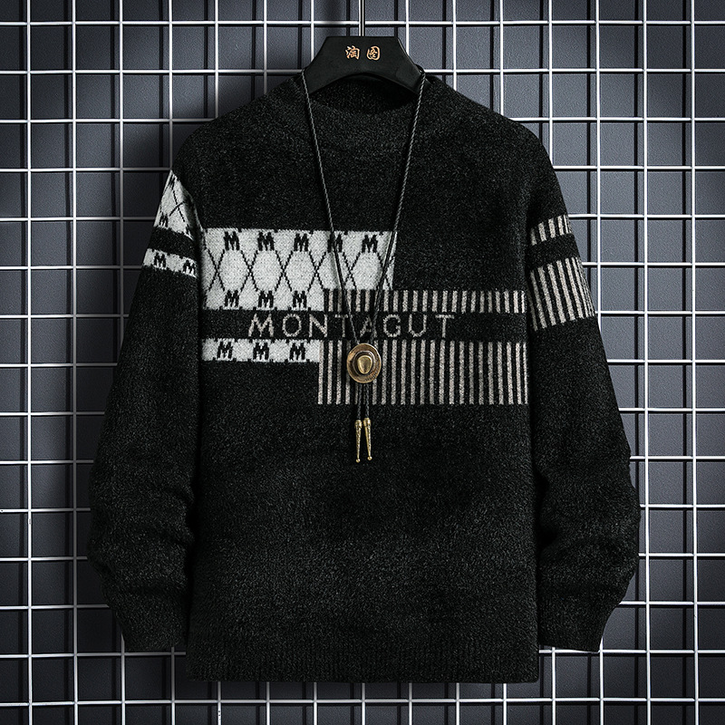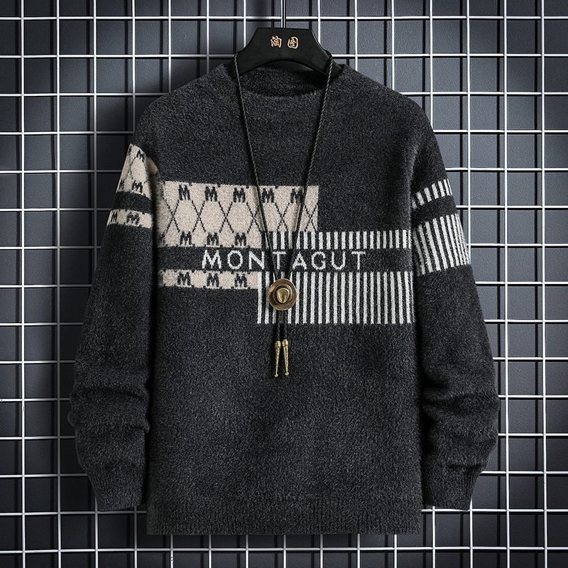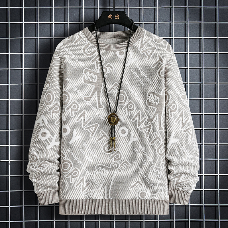 秋冬季男士圆领加厚毛衣青少年套头潮牌保暖线衣针织打底衫学生款