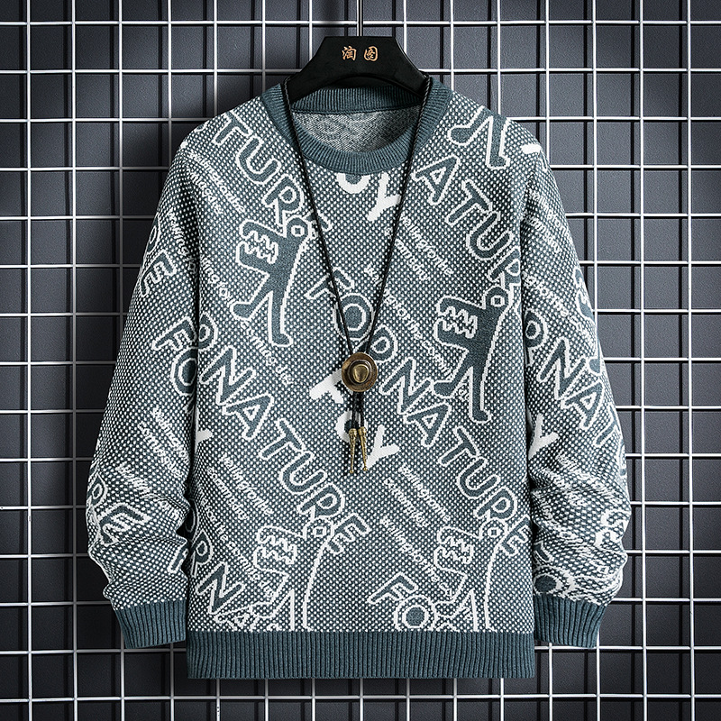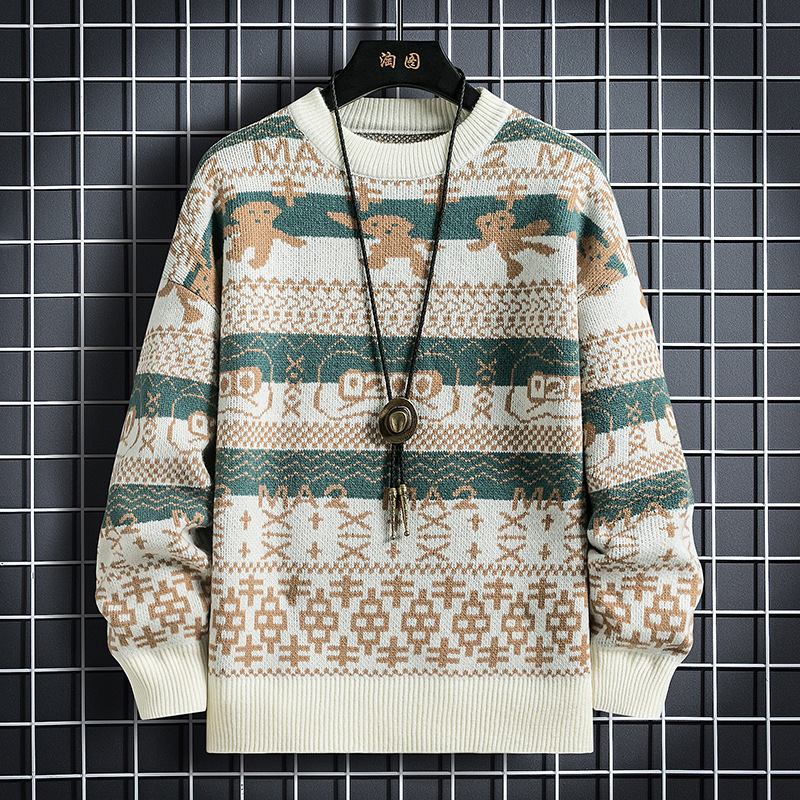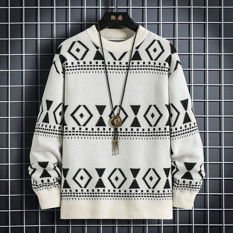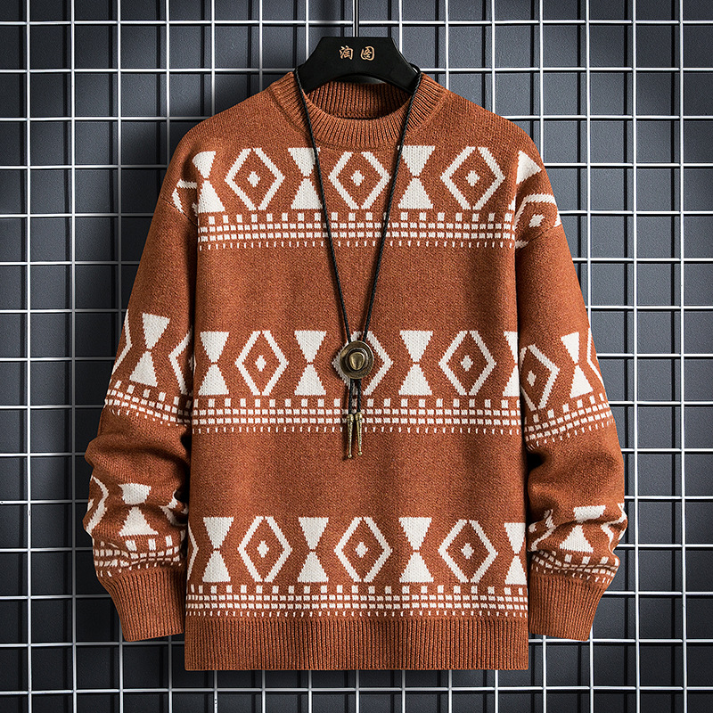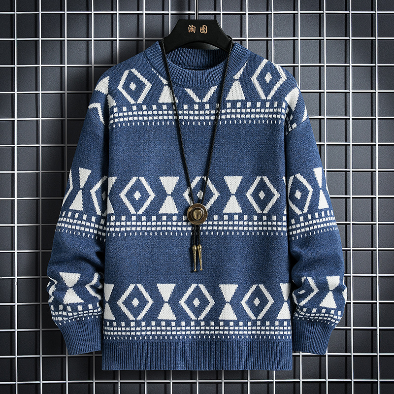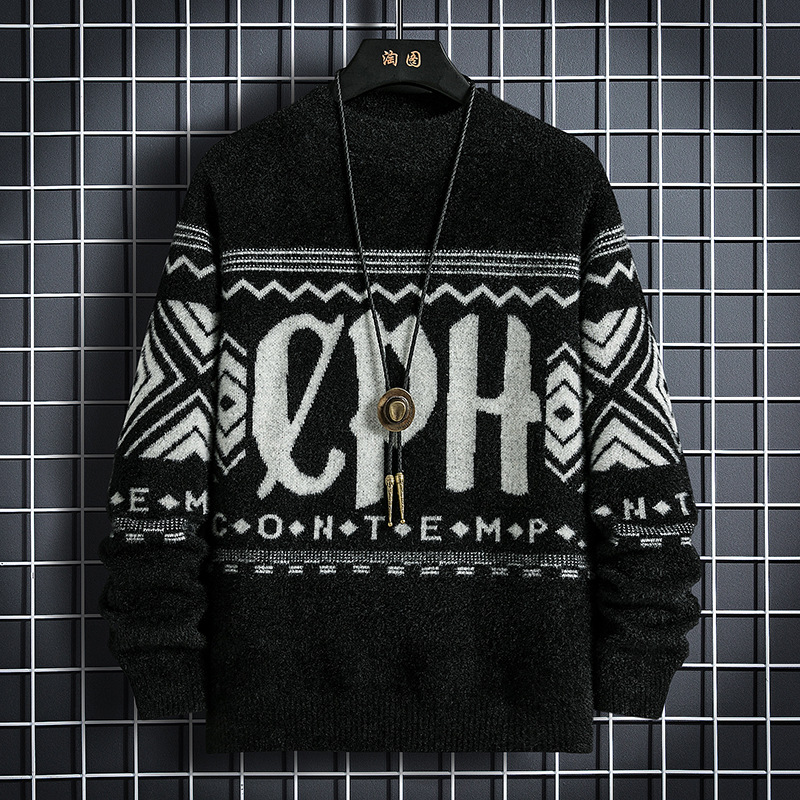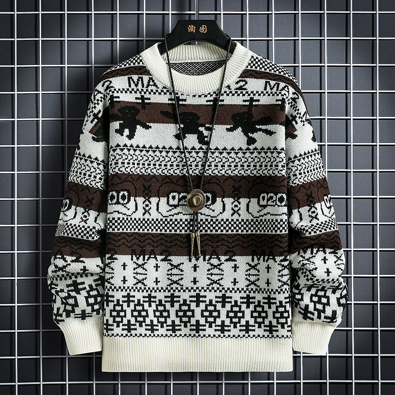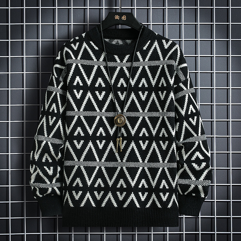 秋冬季男士圆领加厚毛衣青少年套头潮牌保暖线衣针织打底衫学生款