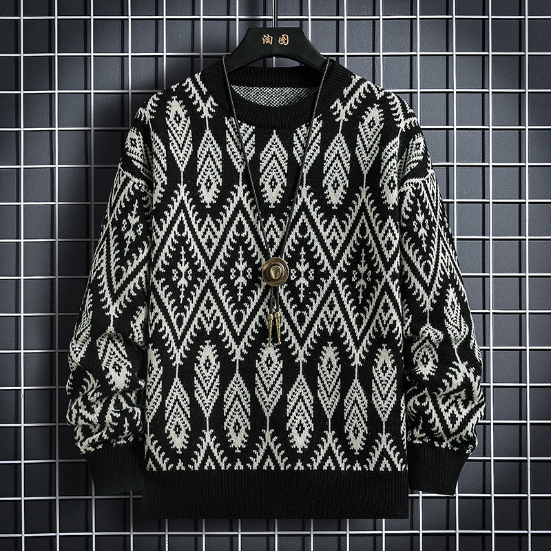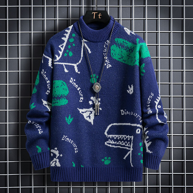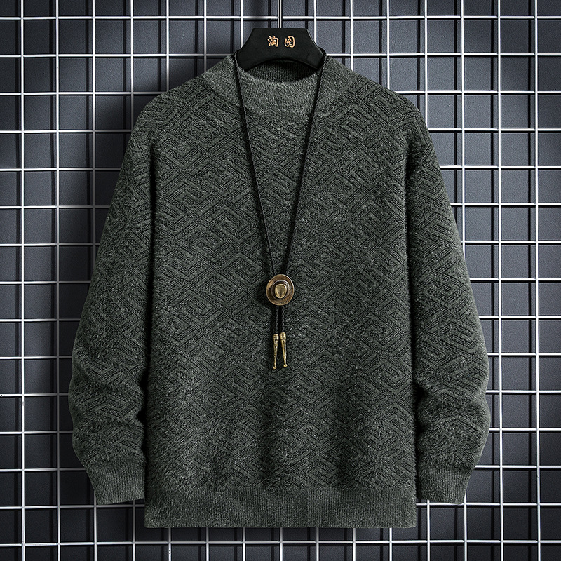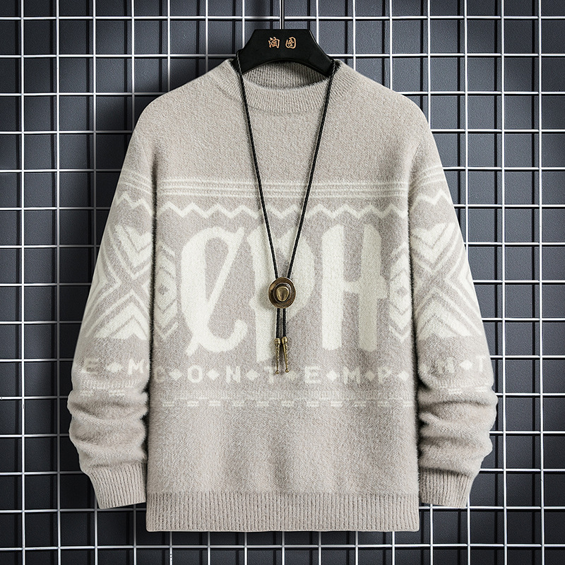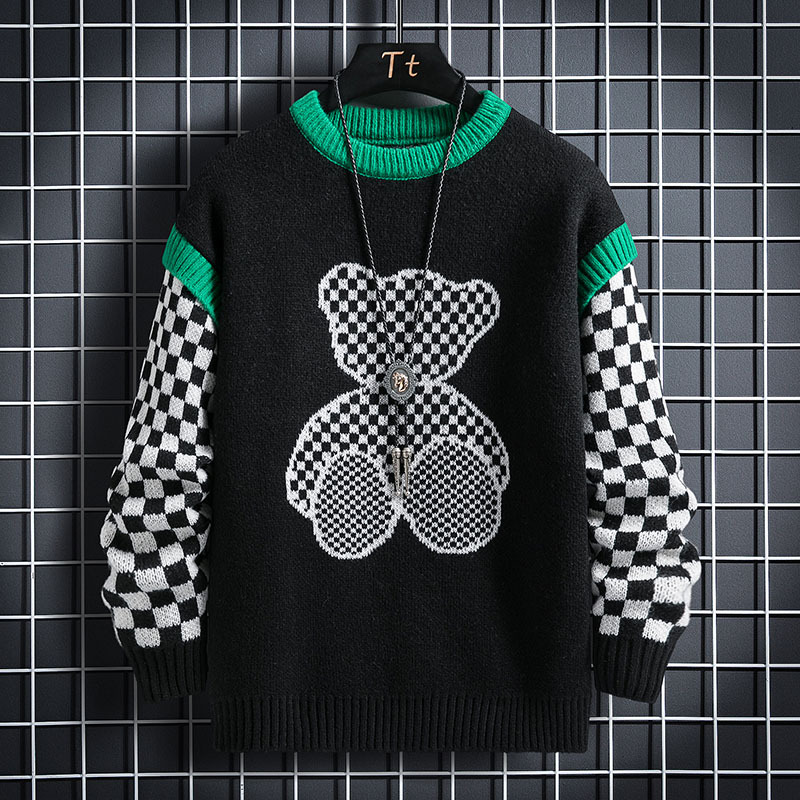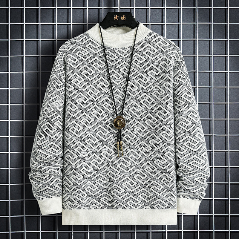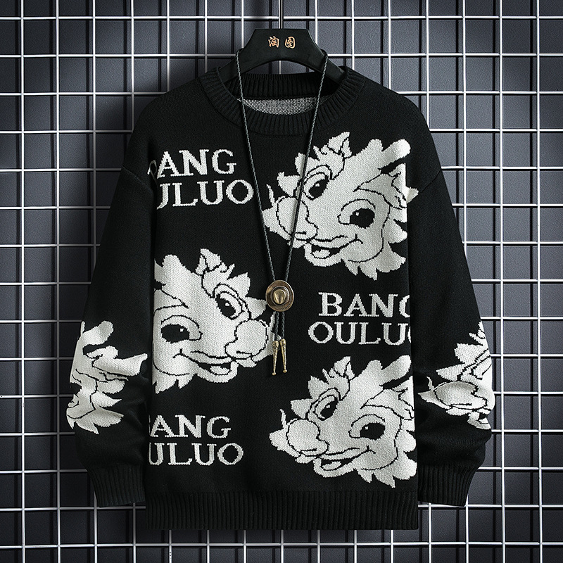 秋冬季男士圆领加厚毛衣青少年套头潮牌保暖线衣针织打底衫学生款