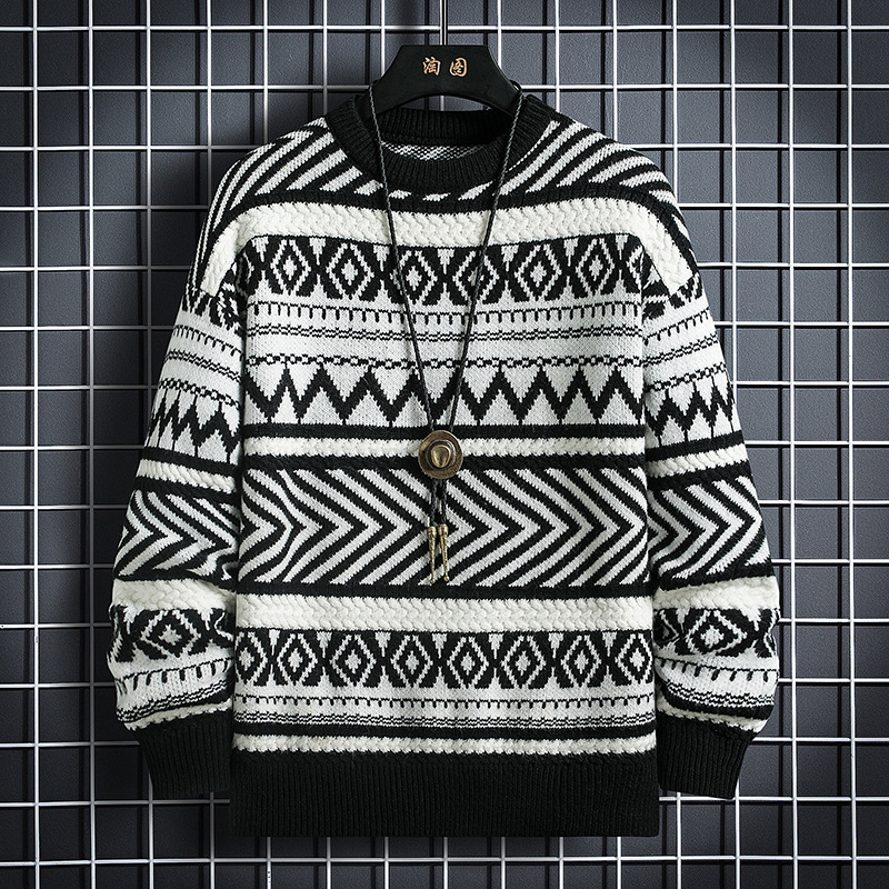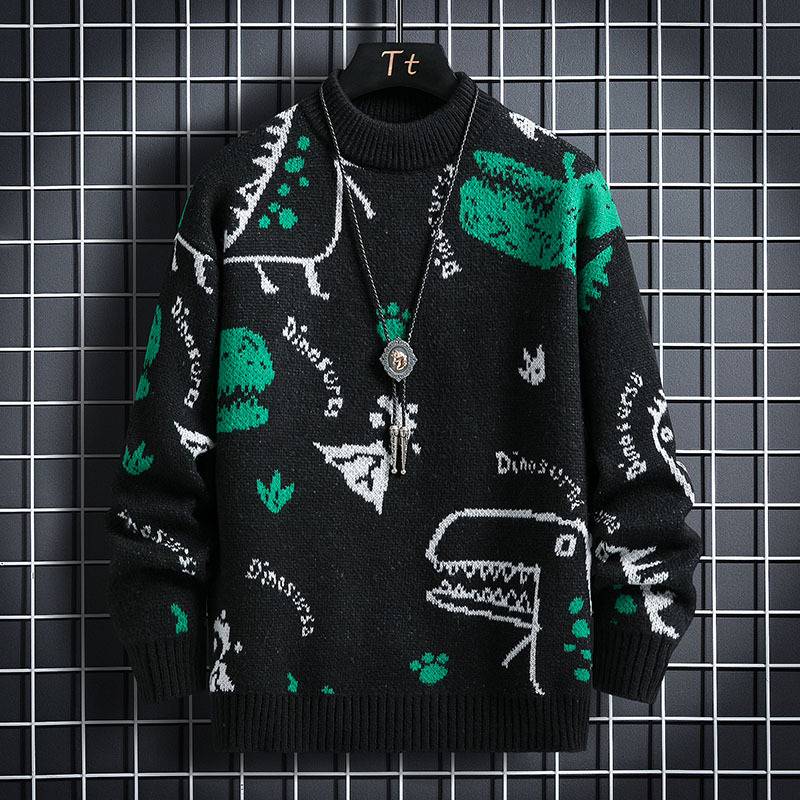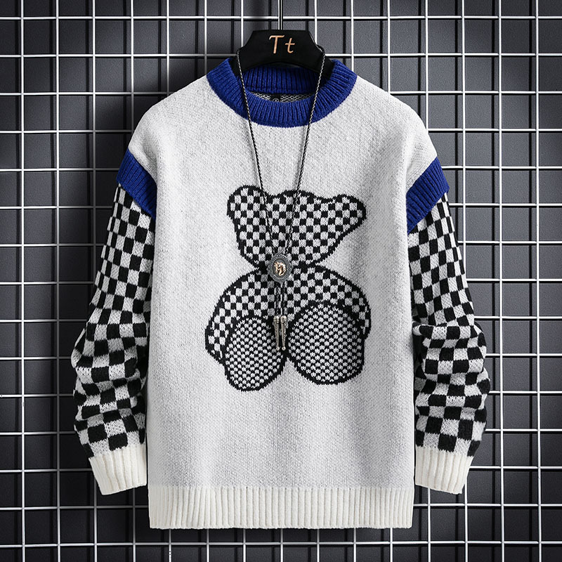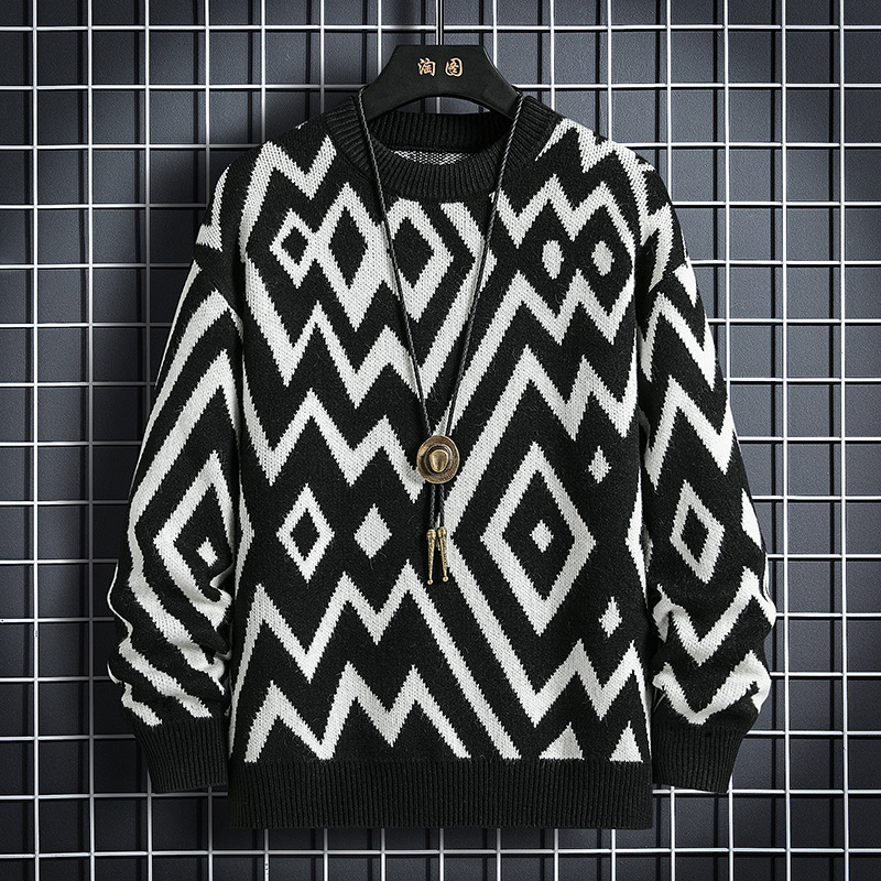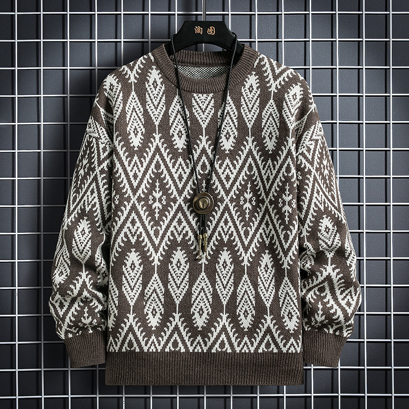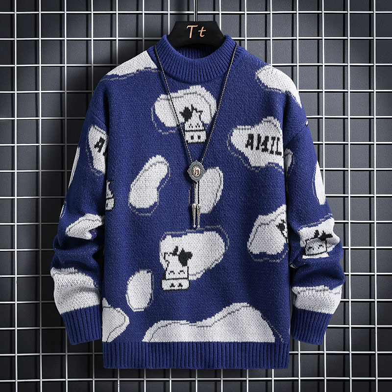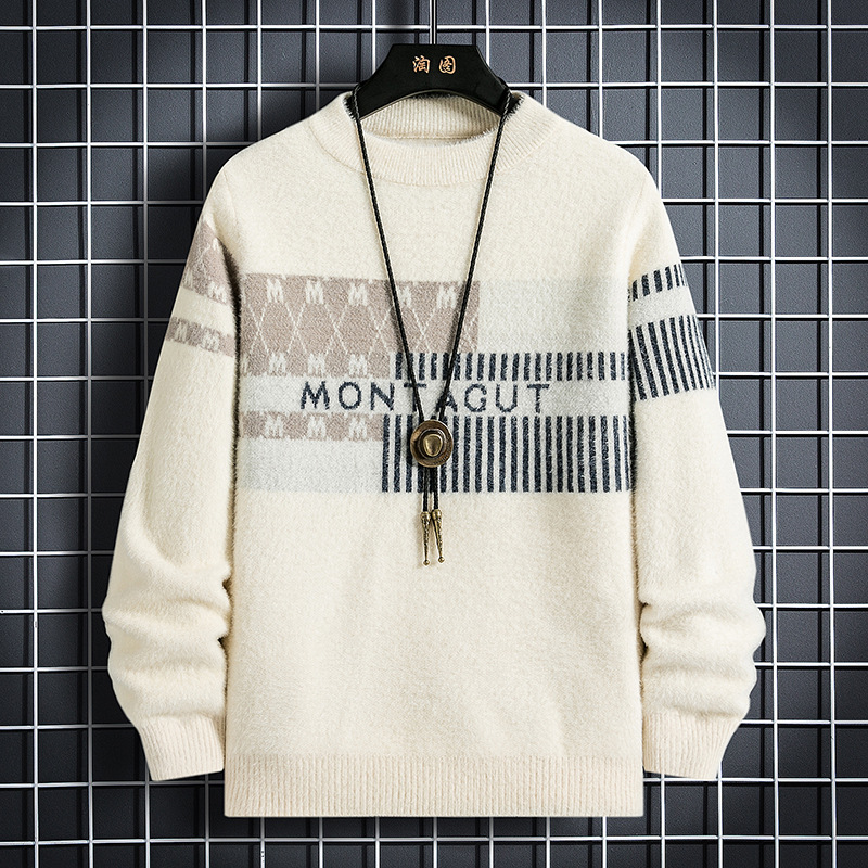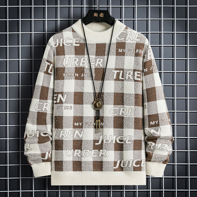 秋冬季男士圆领加厚毛衣青少年套头潮牌保暖线衣针织打底衫学生款