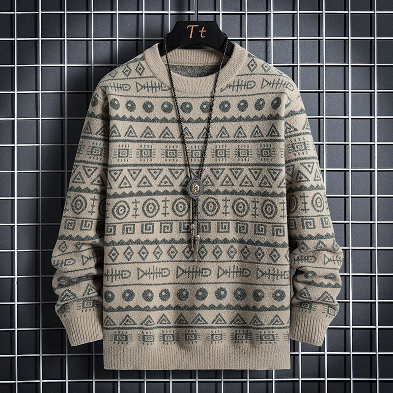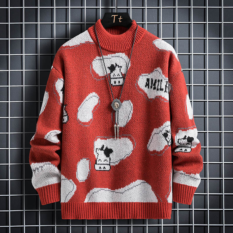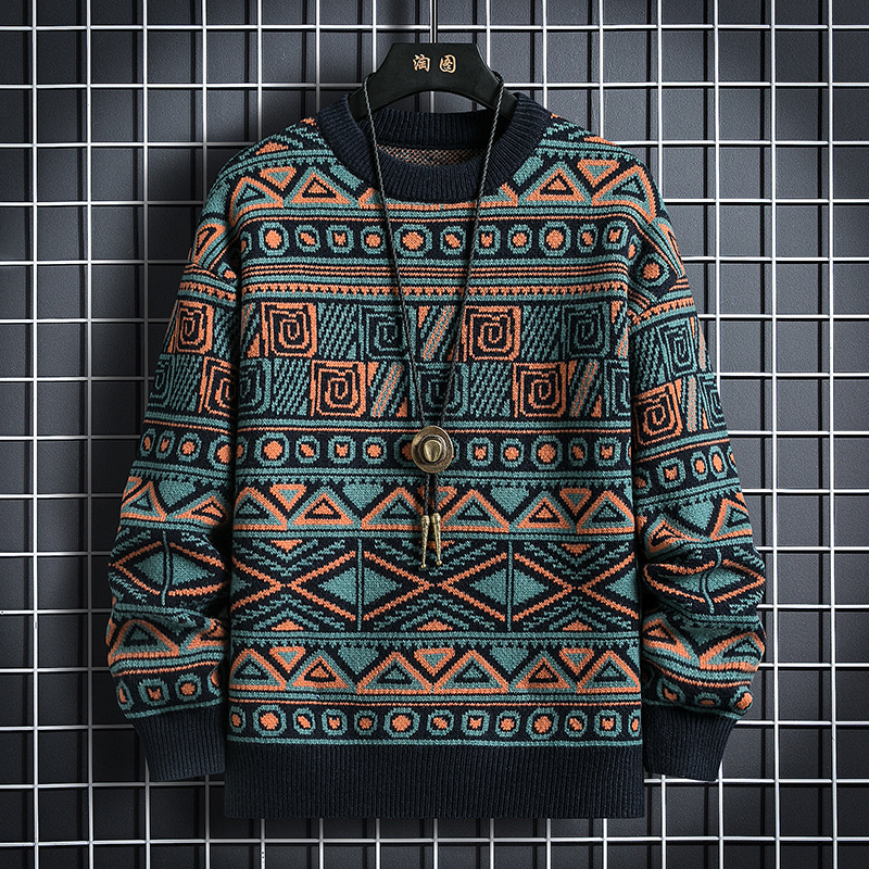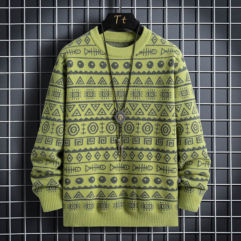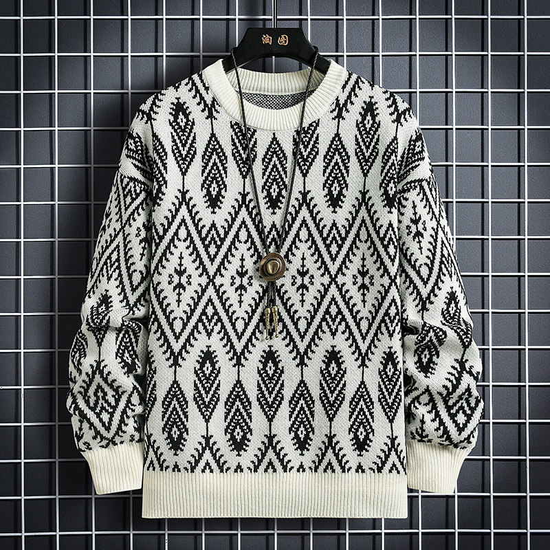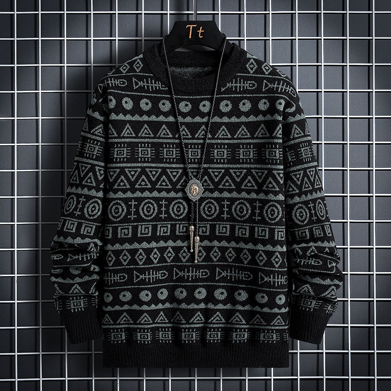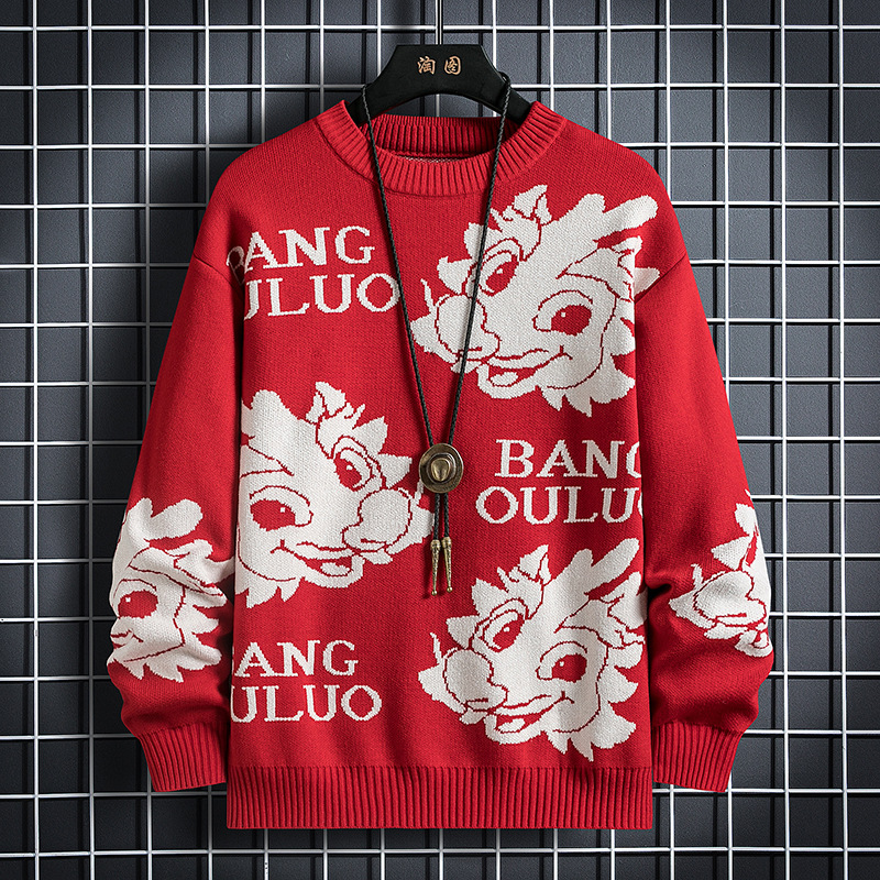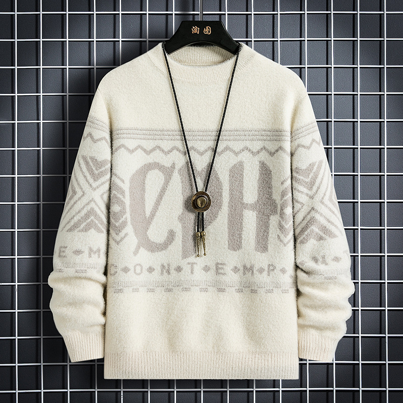 秋冬季男士圆领加厚毛衣青少年套头潮牌保暖线衣针织打底衫学生款
