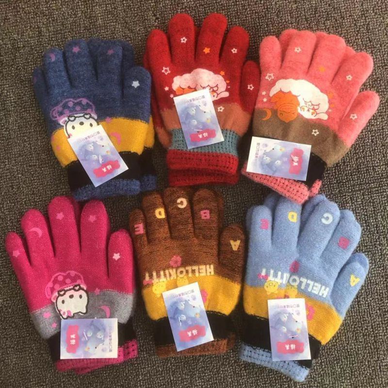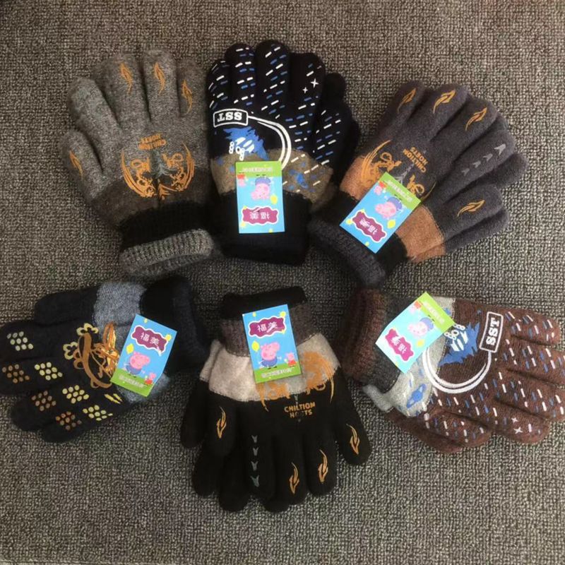 男女儿童手套秋冬季保暖全指毛线中童学生防寒五指马海毛手套厂家