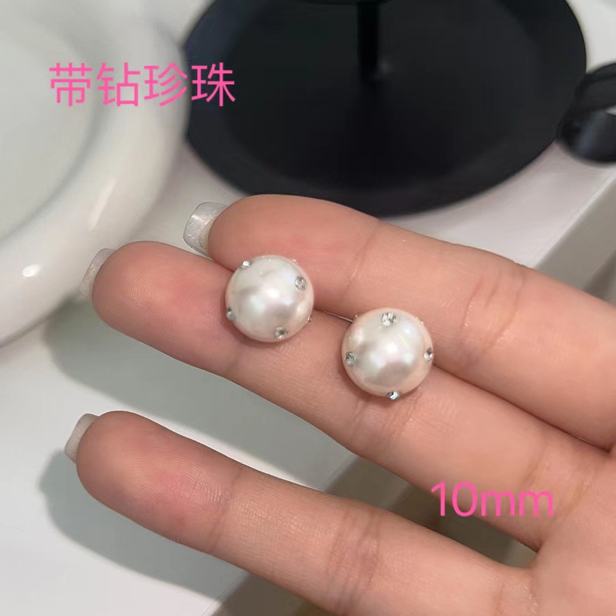天然珍珠耳钉925纯银简约女珍珠耳环高级感批发轻奢港风耳饰ins