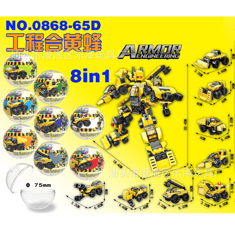 套装8合1大号恐龙扭蛋积木兼容乐高黄蜂儿童拼装玩具礼物地摊货源