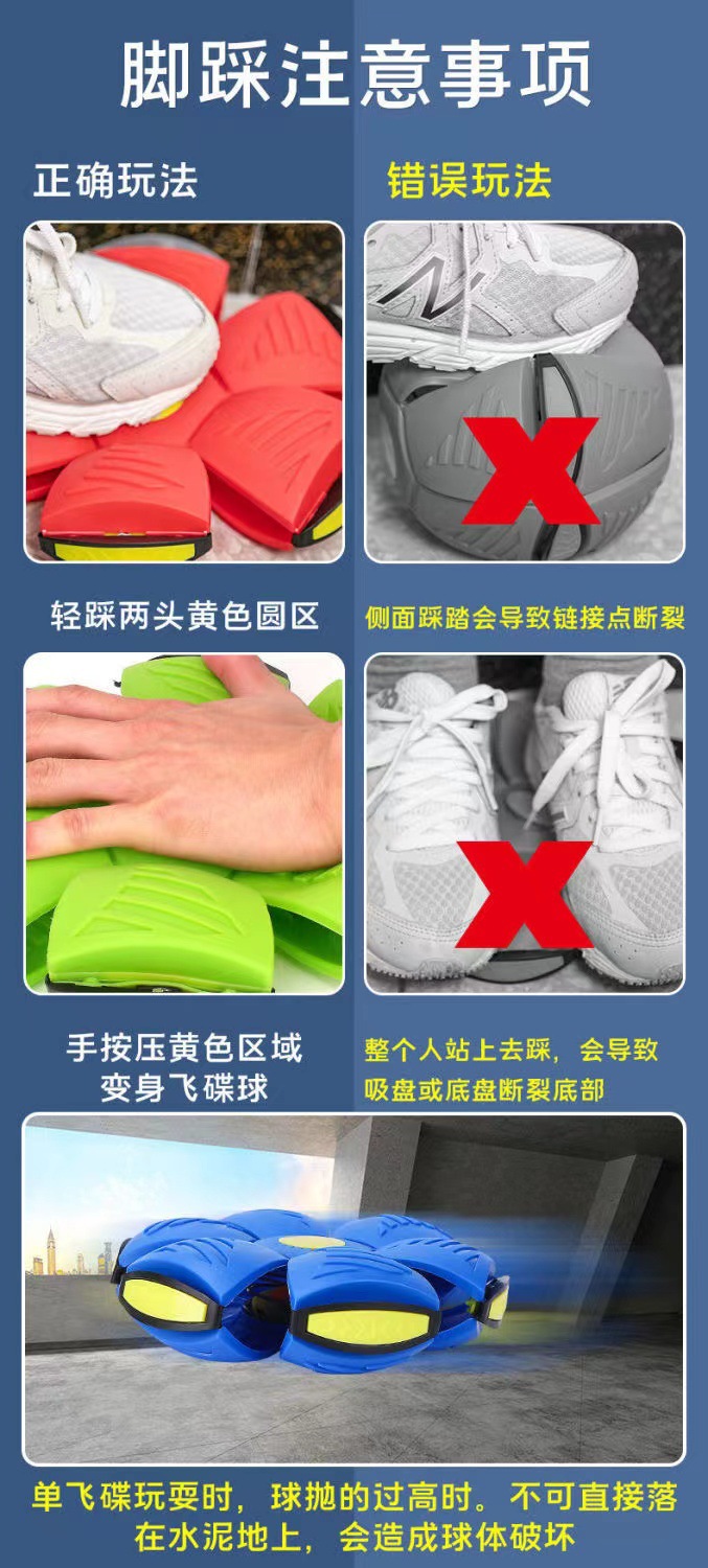 飞碟球弹力踩踩球解压玩具飞盘新款脚踩变形发光运动玩具夜市地摊