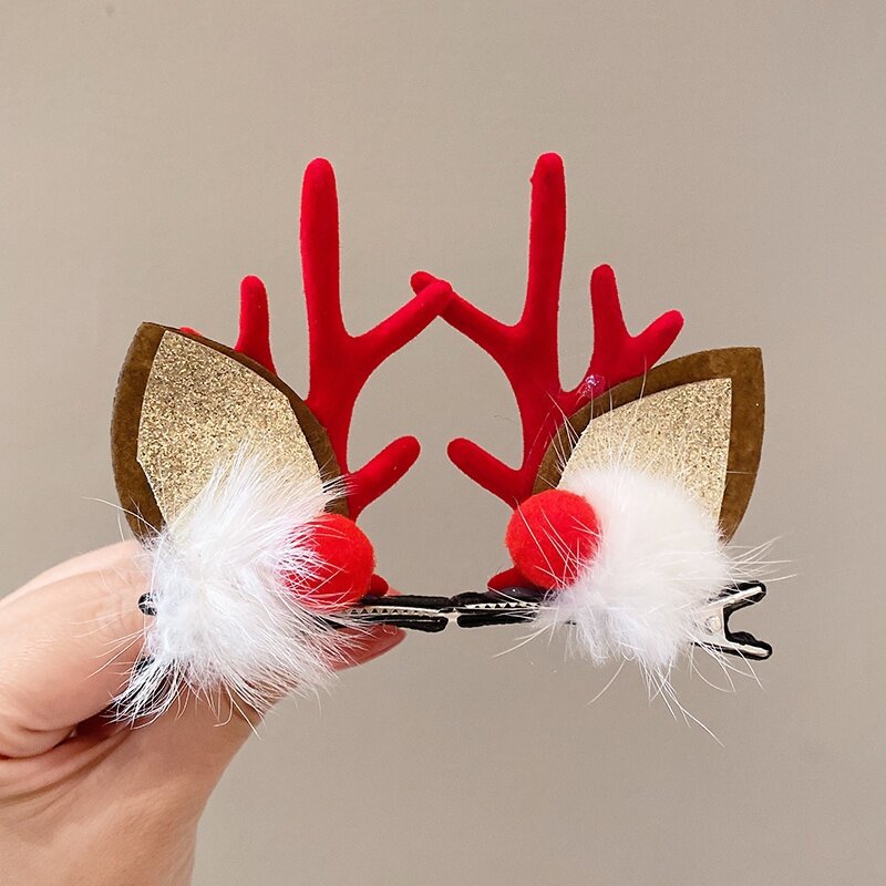 8# fur ball ears red antlers a pair of barrettes(8#毛球耳朵红鹿角一对发夹) USD $1.1 142 pair available