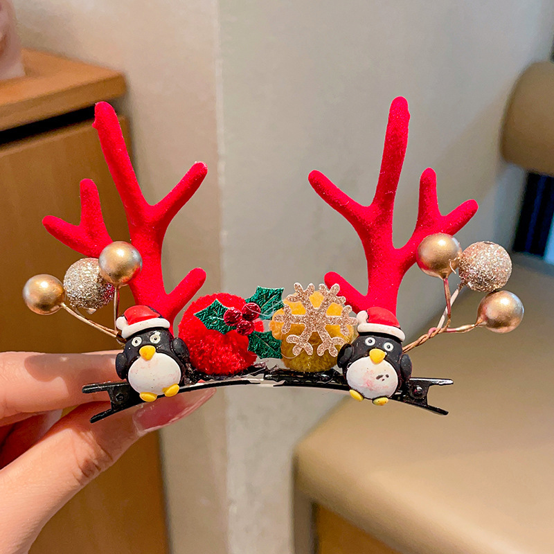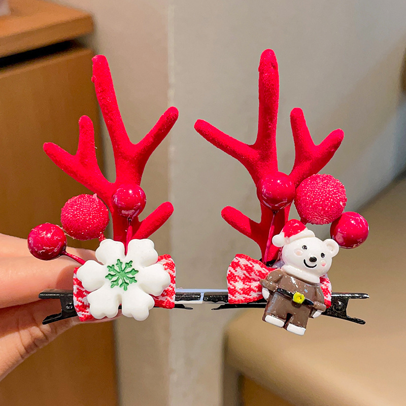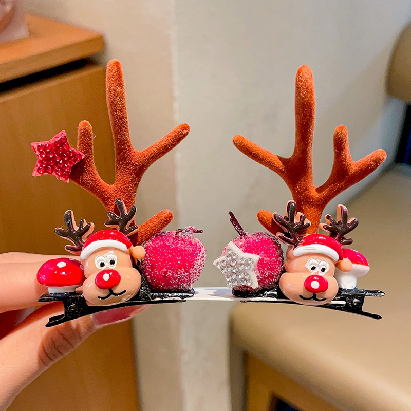 圣诞发夹女森系麋鹿发卡可爱成人儿童小夹子发饰圣诞发箍头饰批发