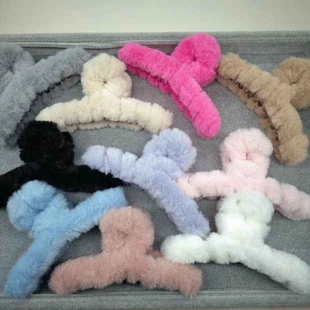 大号11cm毛绒抓夹气质鲨鱼夹秋冬毛茸茸夹子冬季毛绒发夹饰品礼品