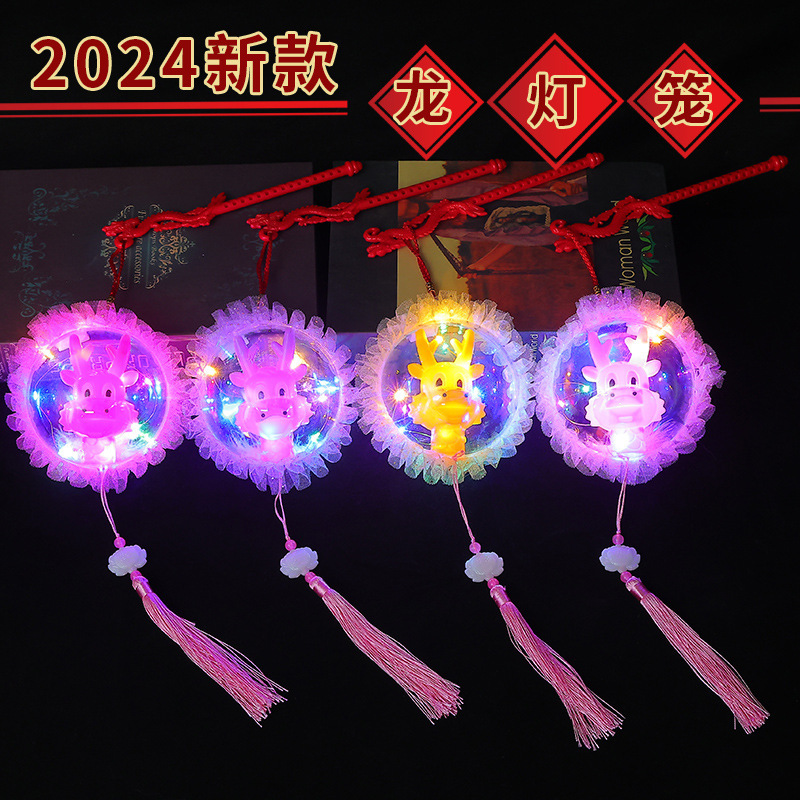 2024春节龙年发光灯笼手提卡通圆球灯笼儿童小礼品元宵节玩具批发