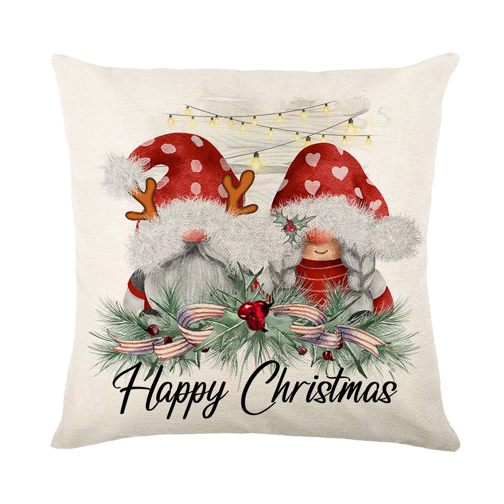 冬季圣诞节抱枕套节日 家居客厅沙发靠垫套卡车印花亚麻靠枕