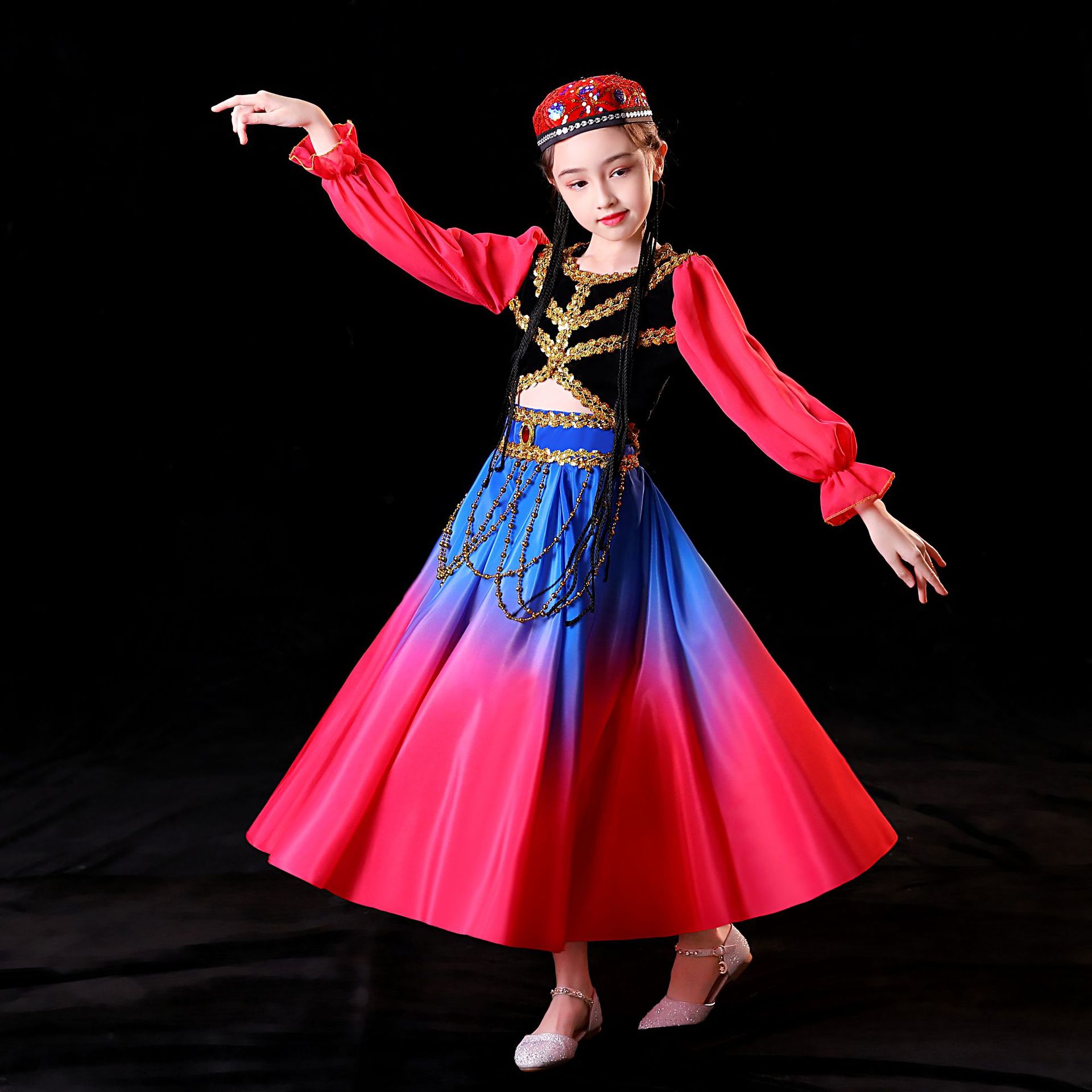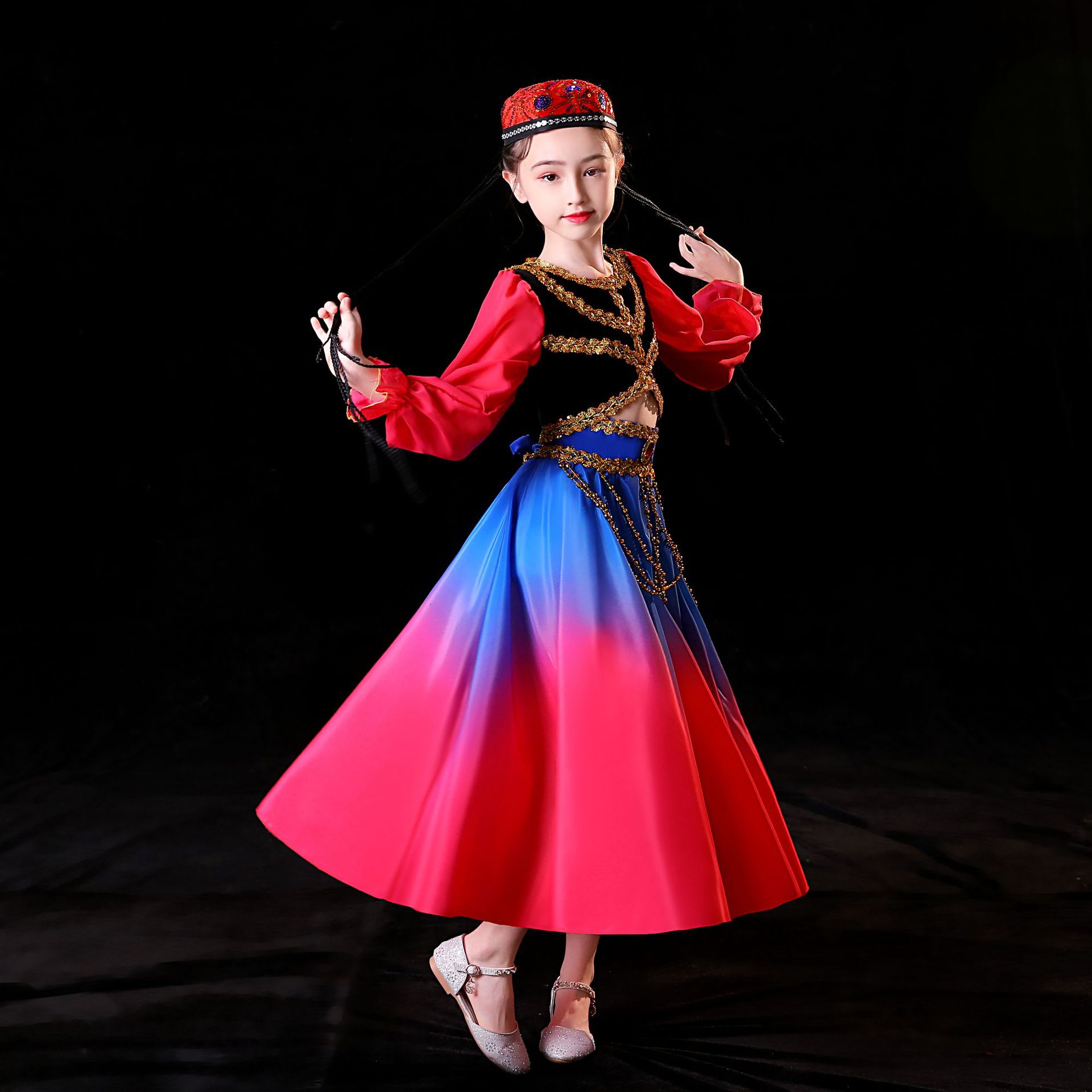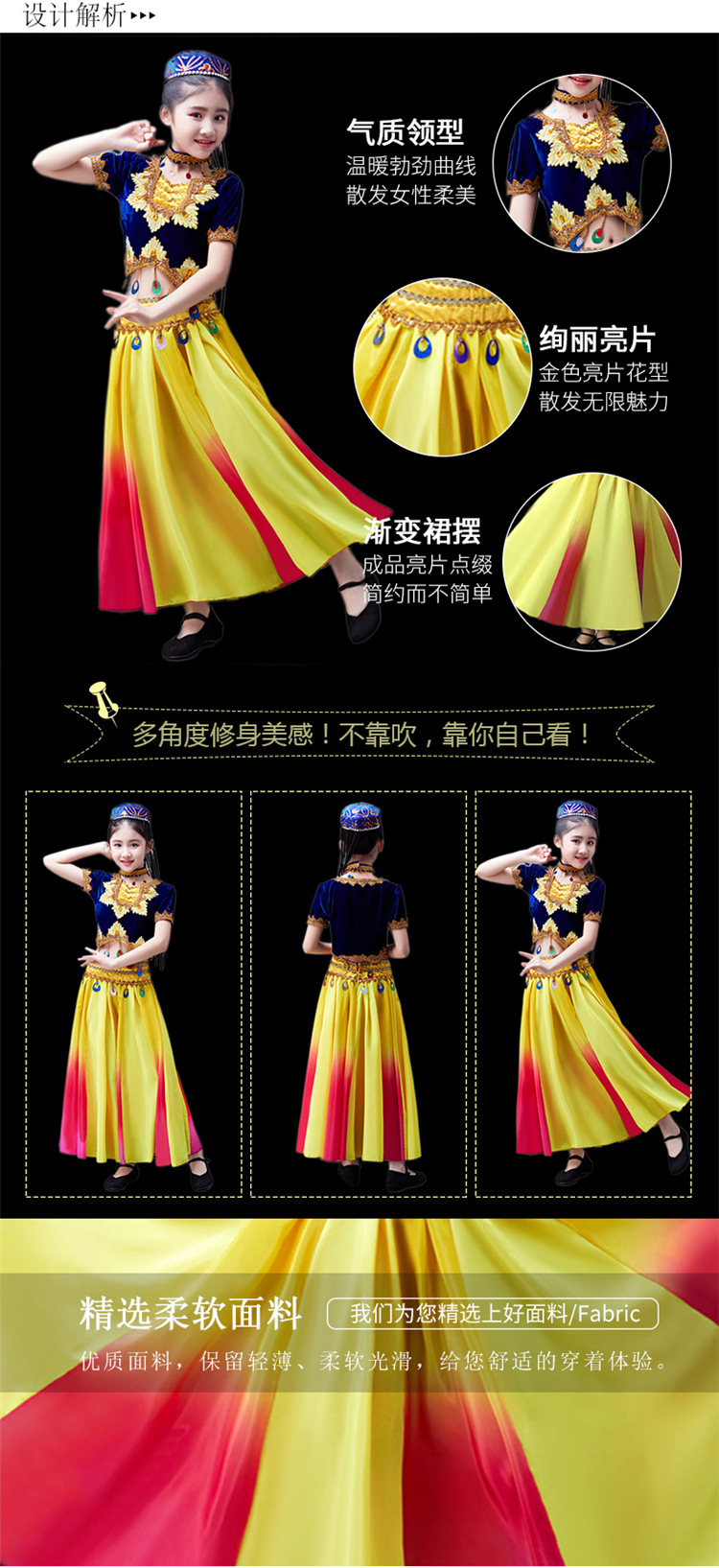 六一儿童新疆舞演出服女童维吾尔族服装哈萨克族少数回民族舞蹈服