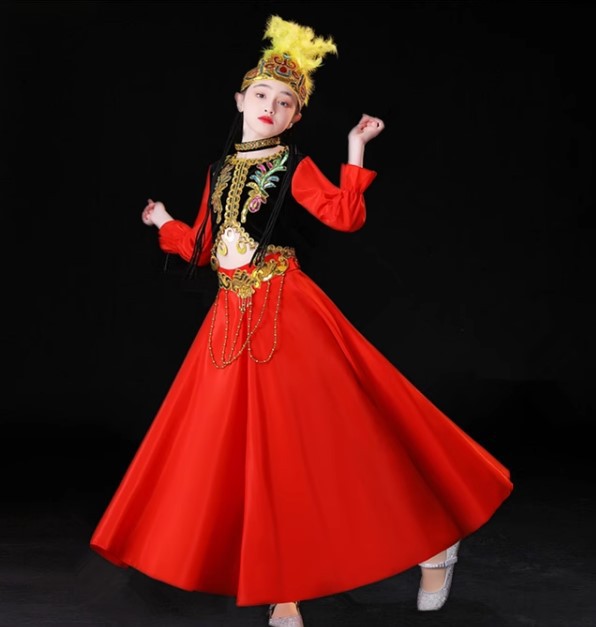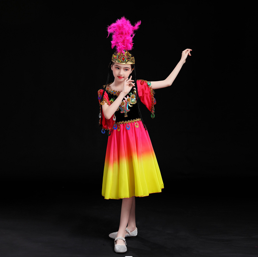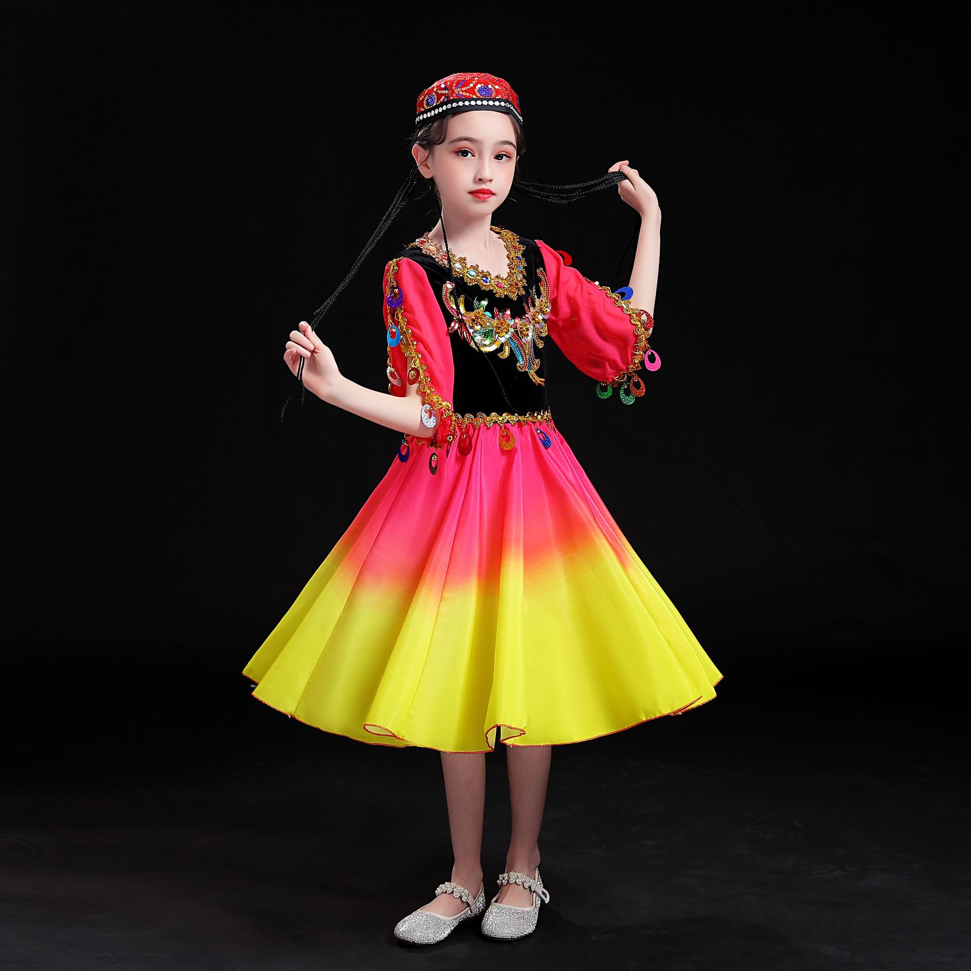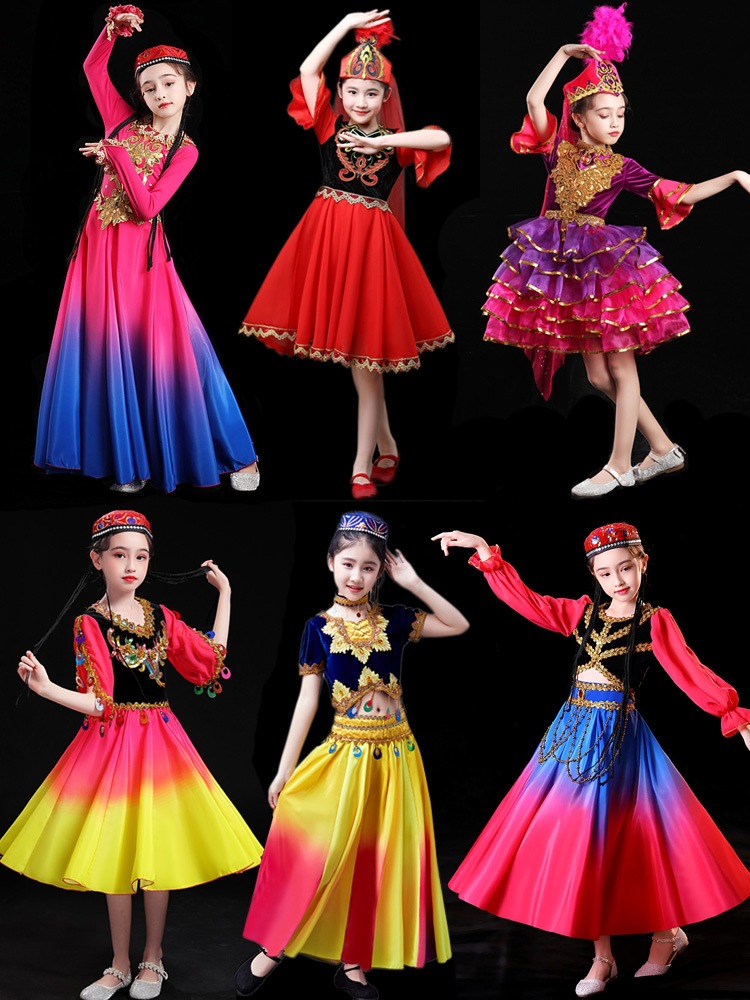 六一儿童新疆舞演出服女童维吾尔族服装哈萨克族少数回民族舞蹈服