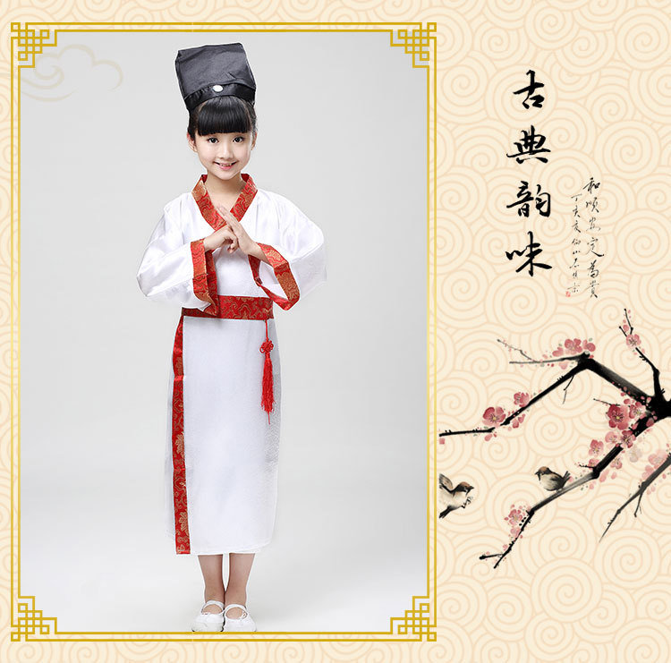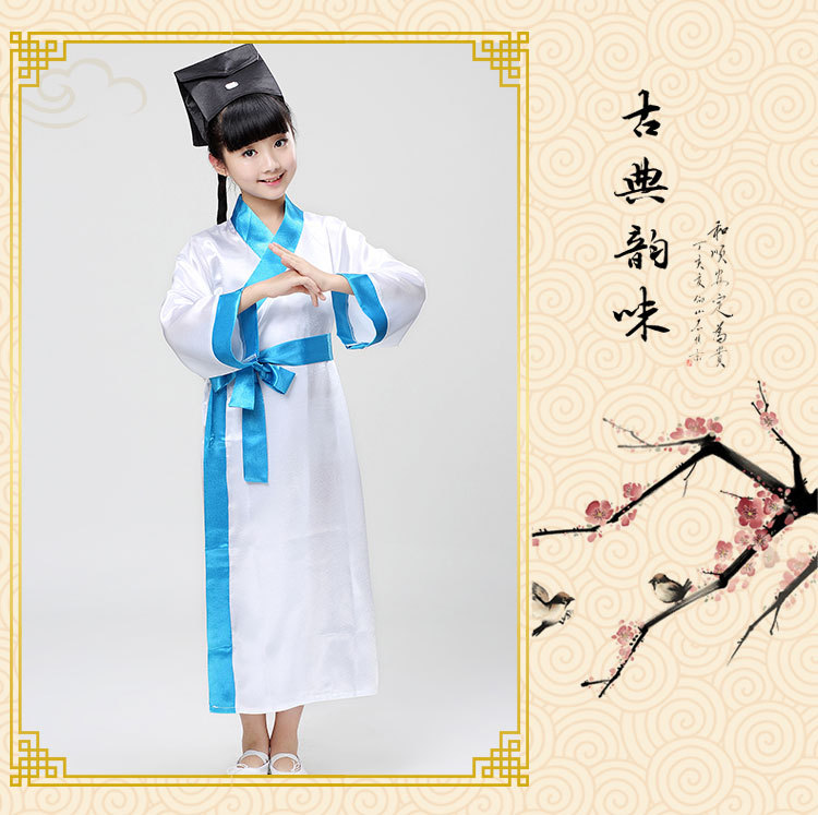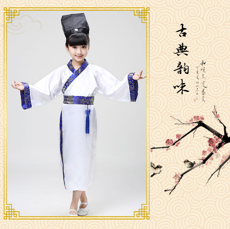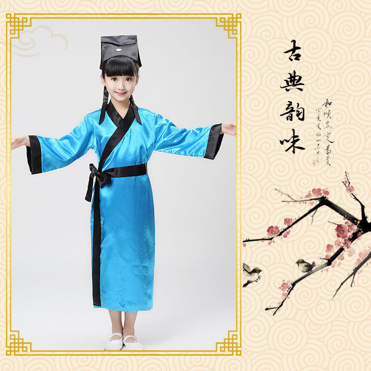 儿童书童演出服古装国学服汉服男女童表演服三字经弟子规服装男