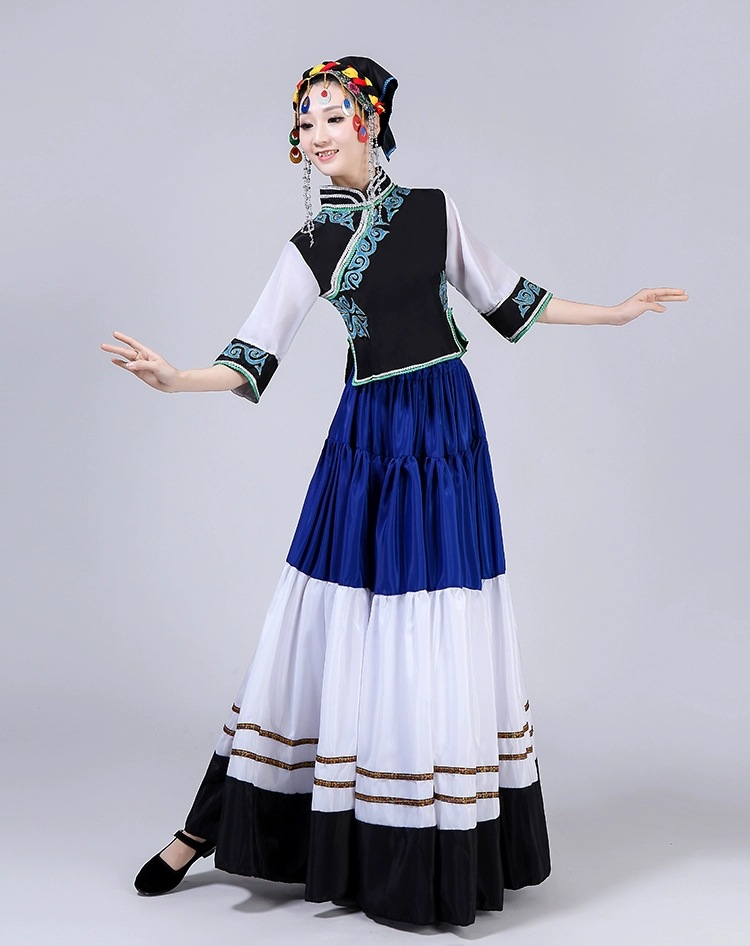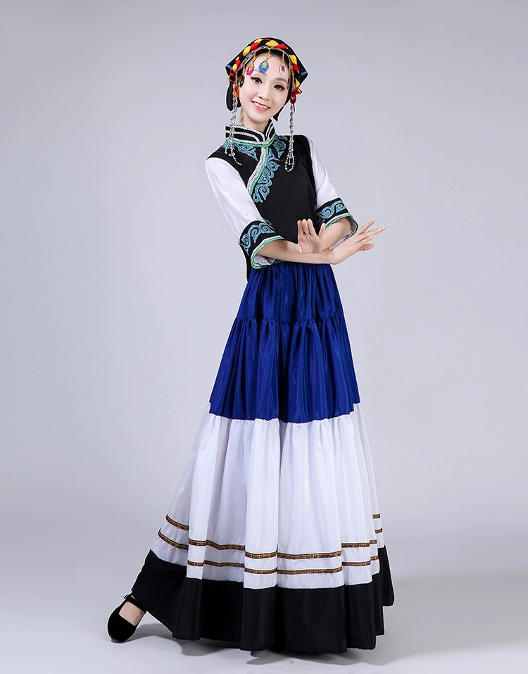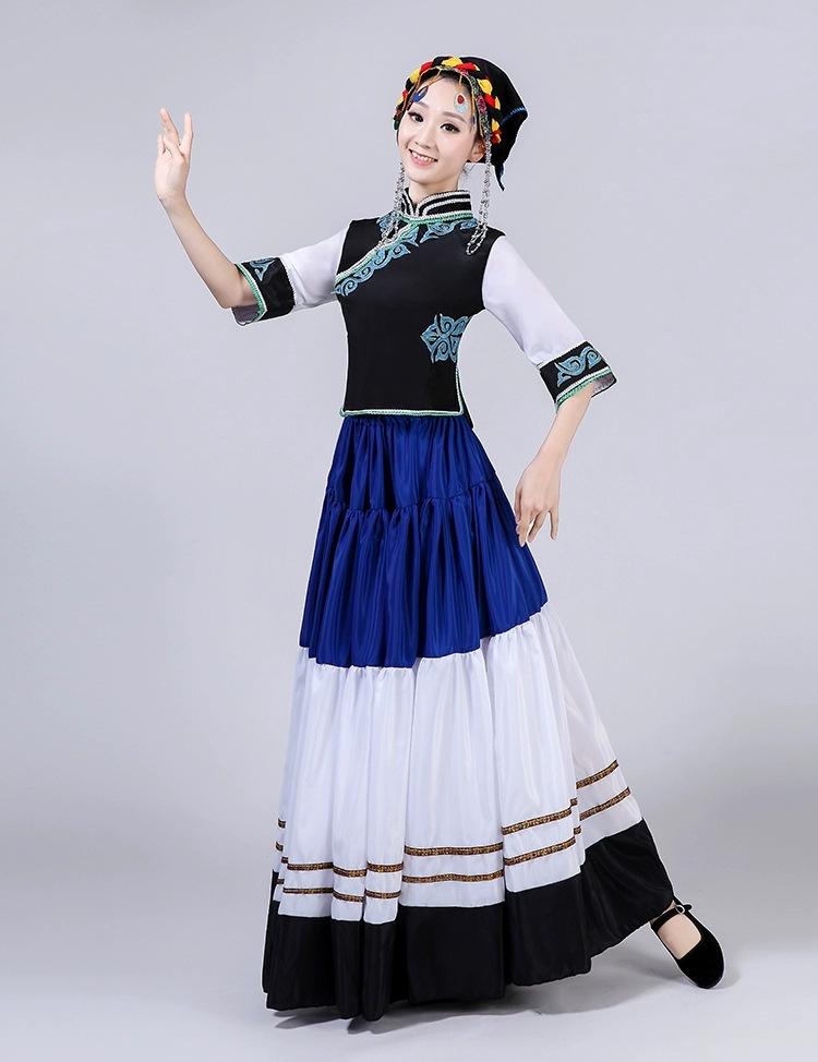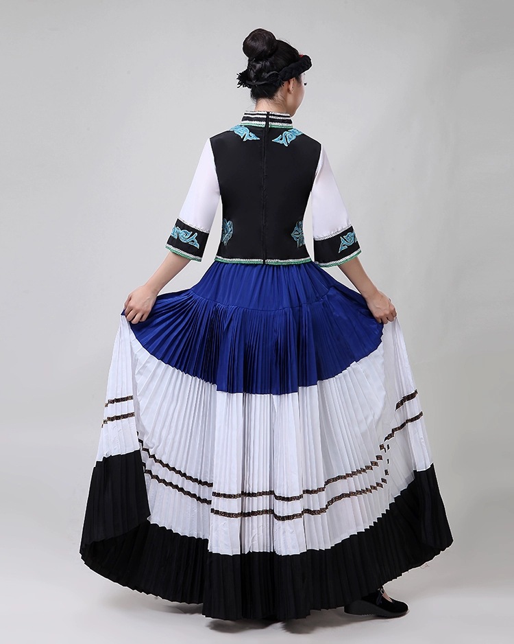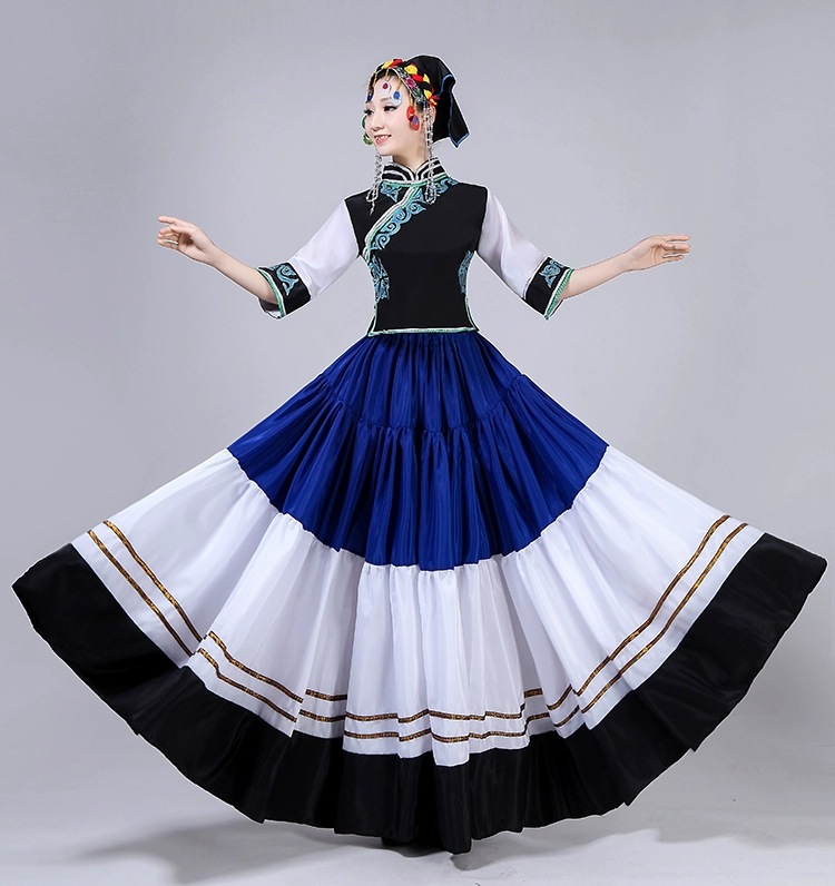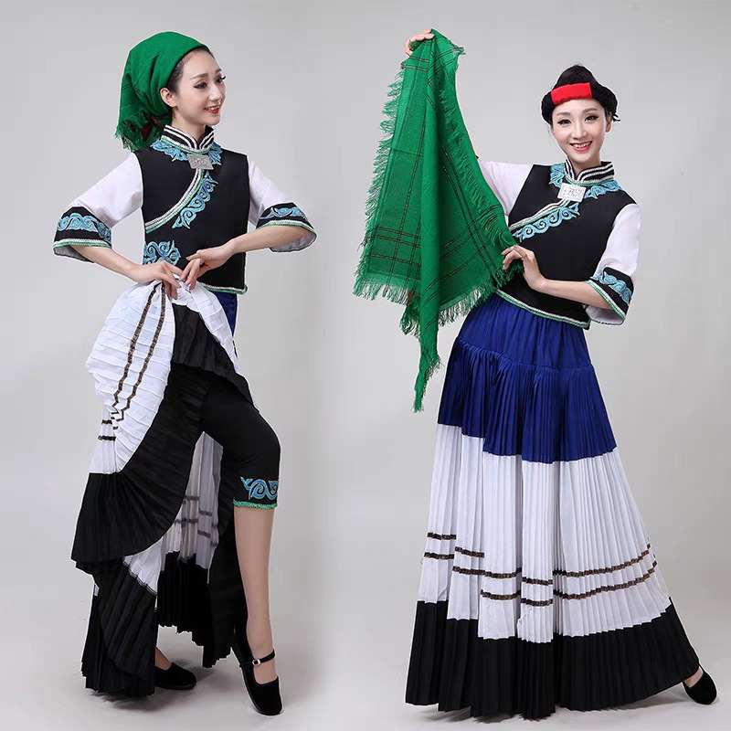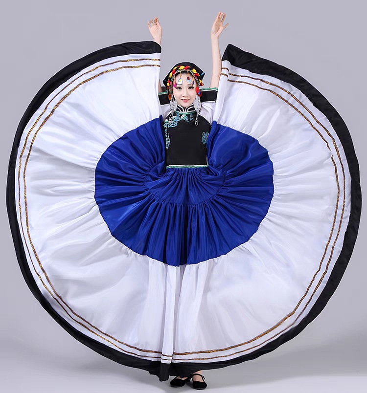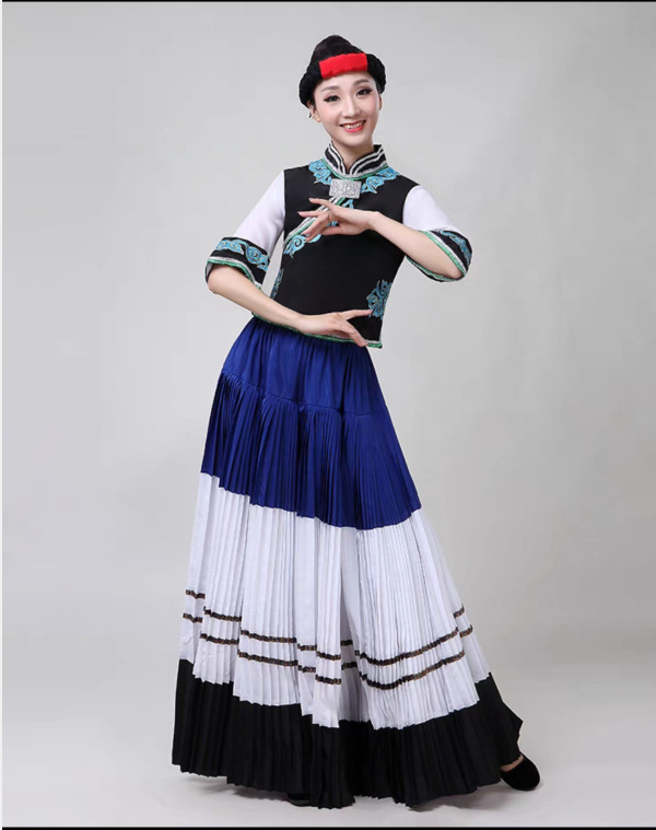 彝族舞蹈练习裙苗族桐族舞练功裙火把节演出服装半身裙成人大摆裙