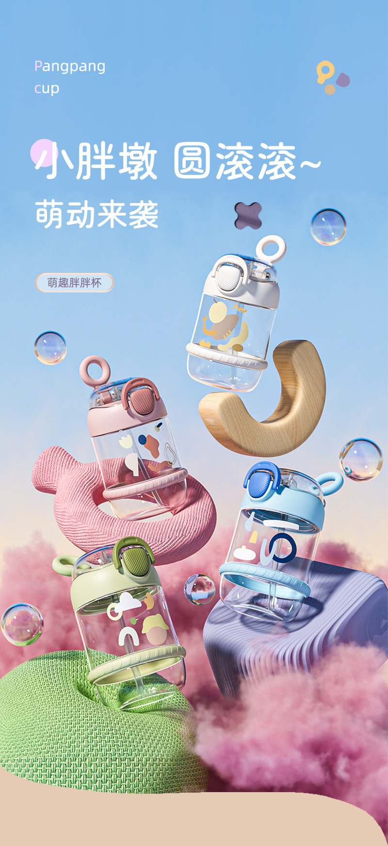 水杯批发大肚杯儿童大容量便携塑料杯代发