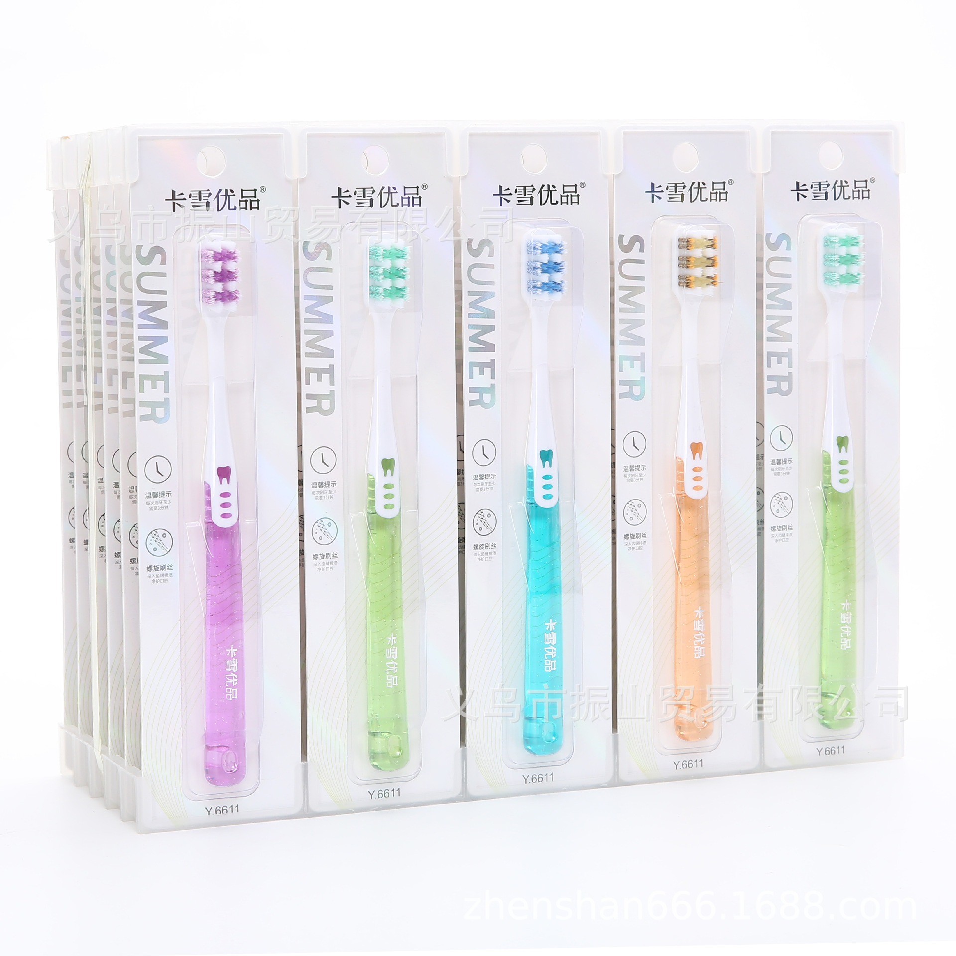 卡雪6611 双面纸卡 透明防滑刷柄 螺旋炫护软毛牙刷