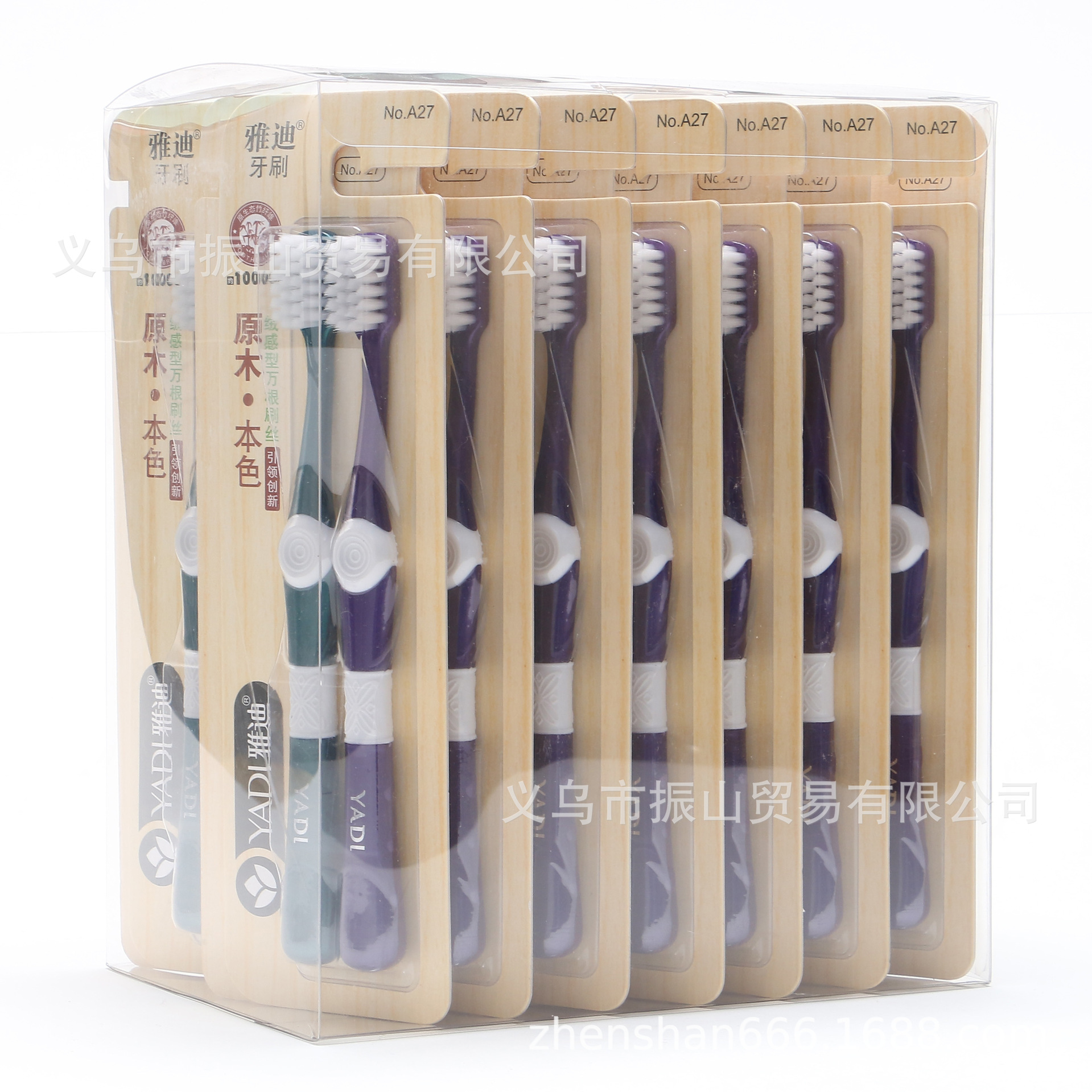 雅迪A27 双面木纹纸卡绒感型万根美容刷毛大头大柄双支装牙刷