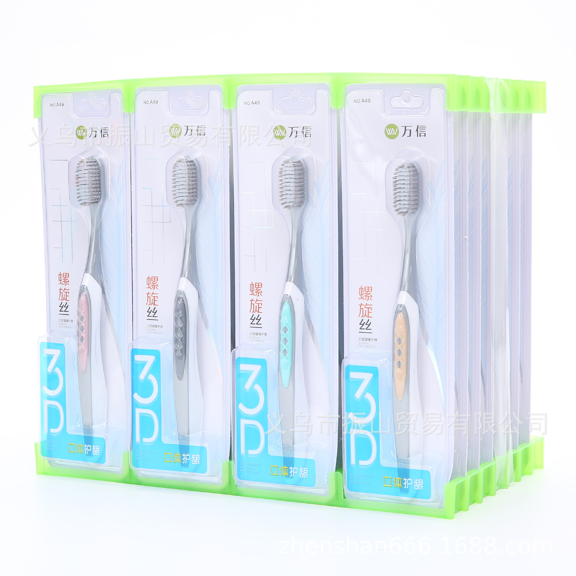 万信A49 匠心工艺焕白新生镭射卡螺旋刷丝全方位口腔护理软毛牙刷
