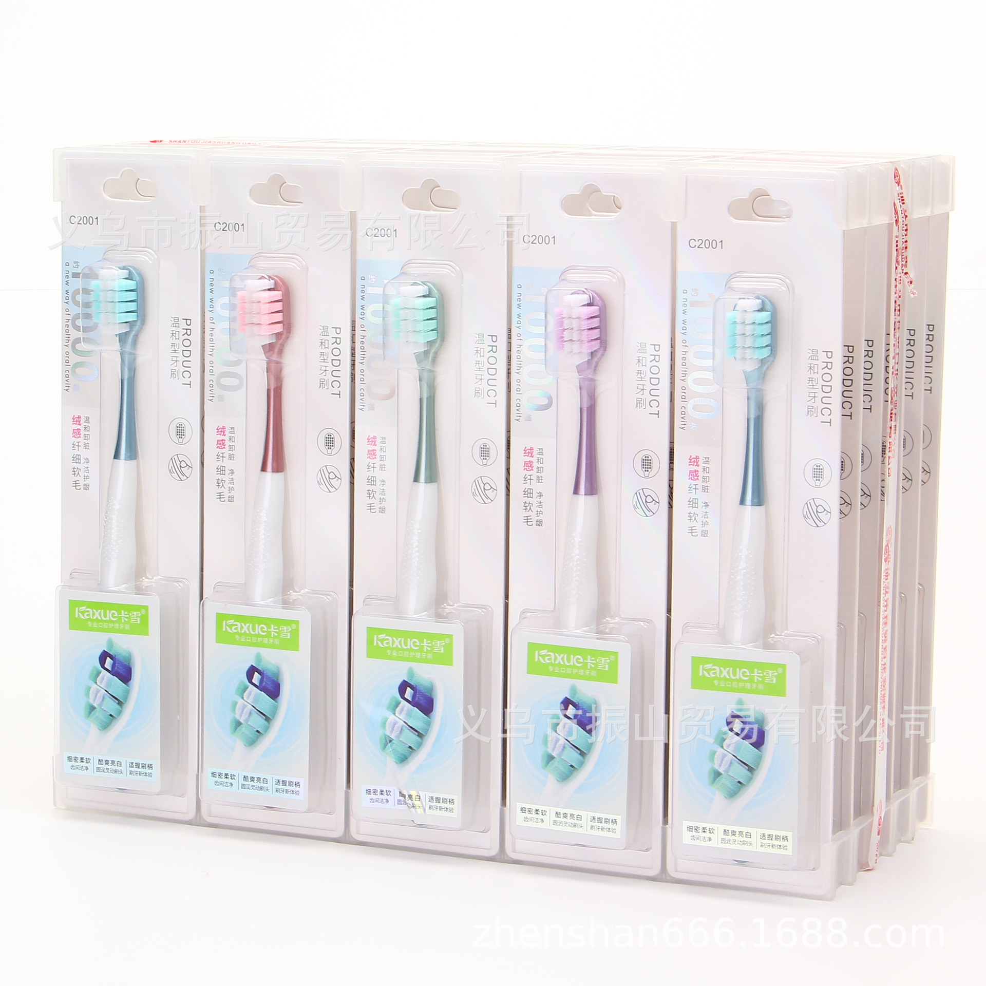 卡雪C2001 温和卸脏净洁护龈舒适防滑刷柄绒感纤细软毛牙刷
