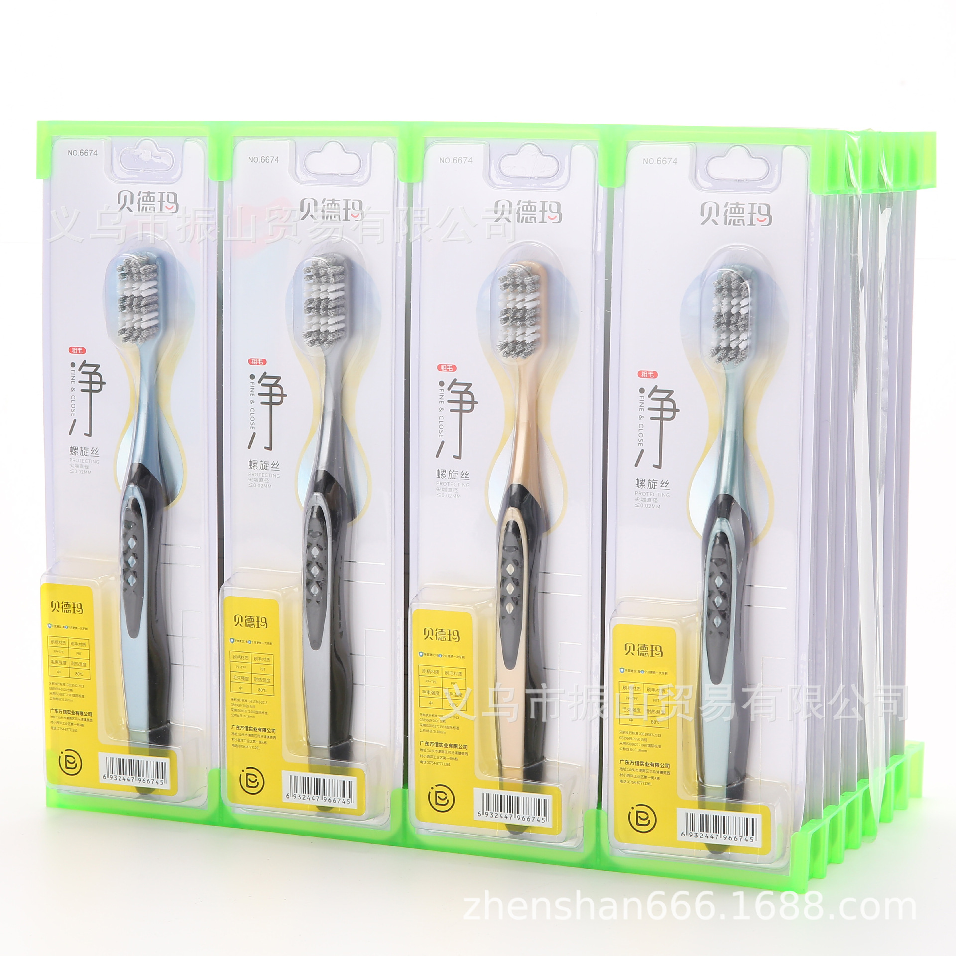 BDM6674 加大纸卡 防滑刷柄设计 螺旋护齿刷丝 中毛牙刷