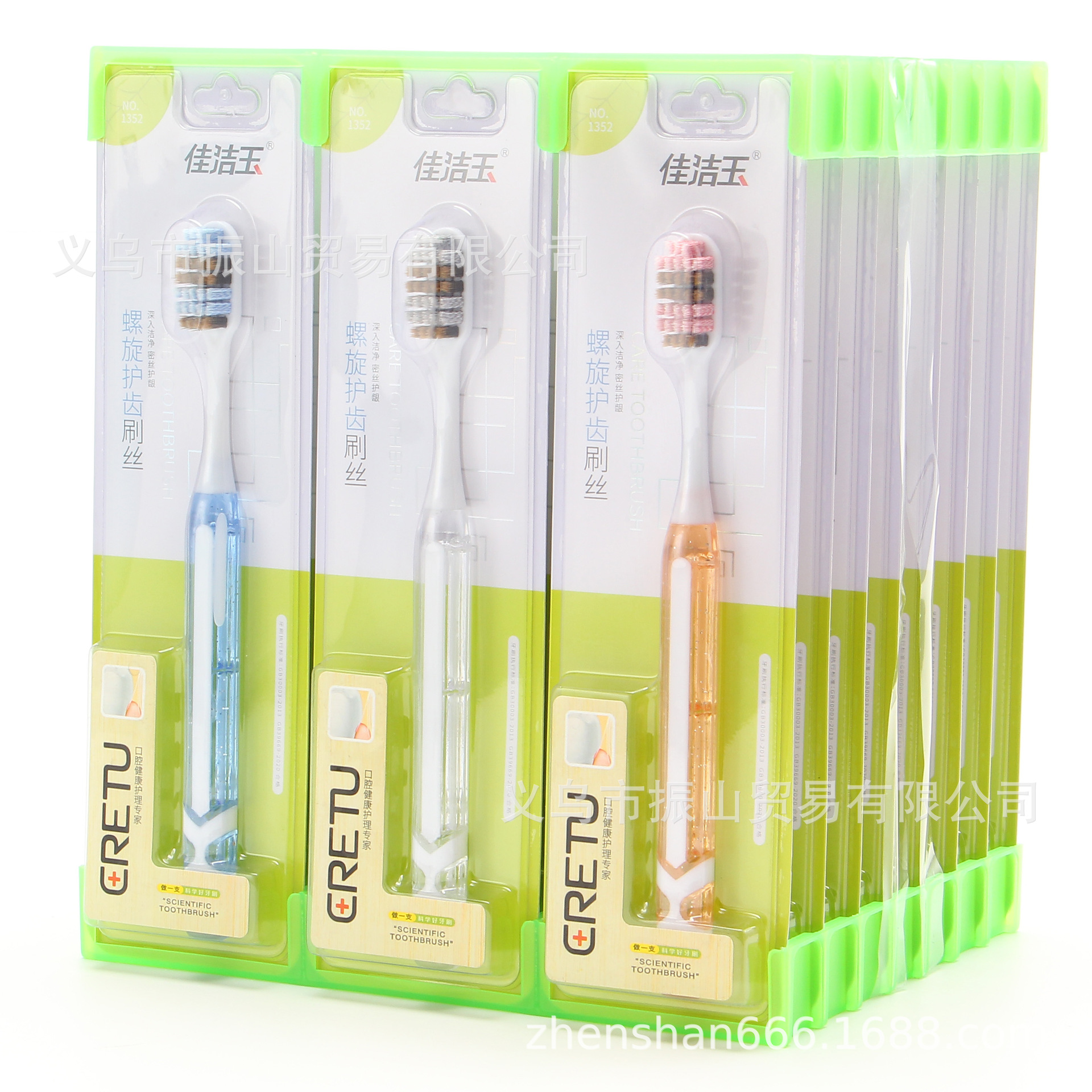 佳洁玉1352 宽卡包装科学竖排刷孔螺旋护齿刷丝软毛牙刷