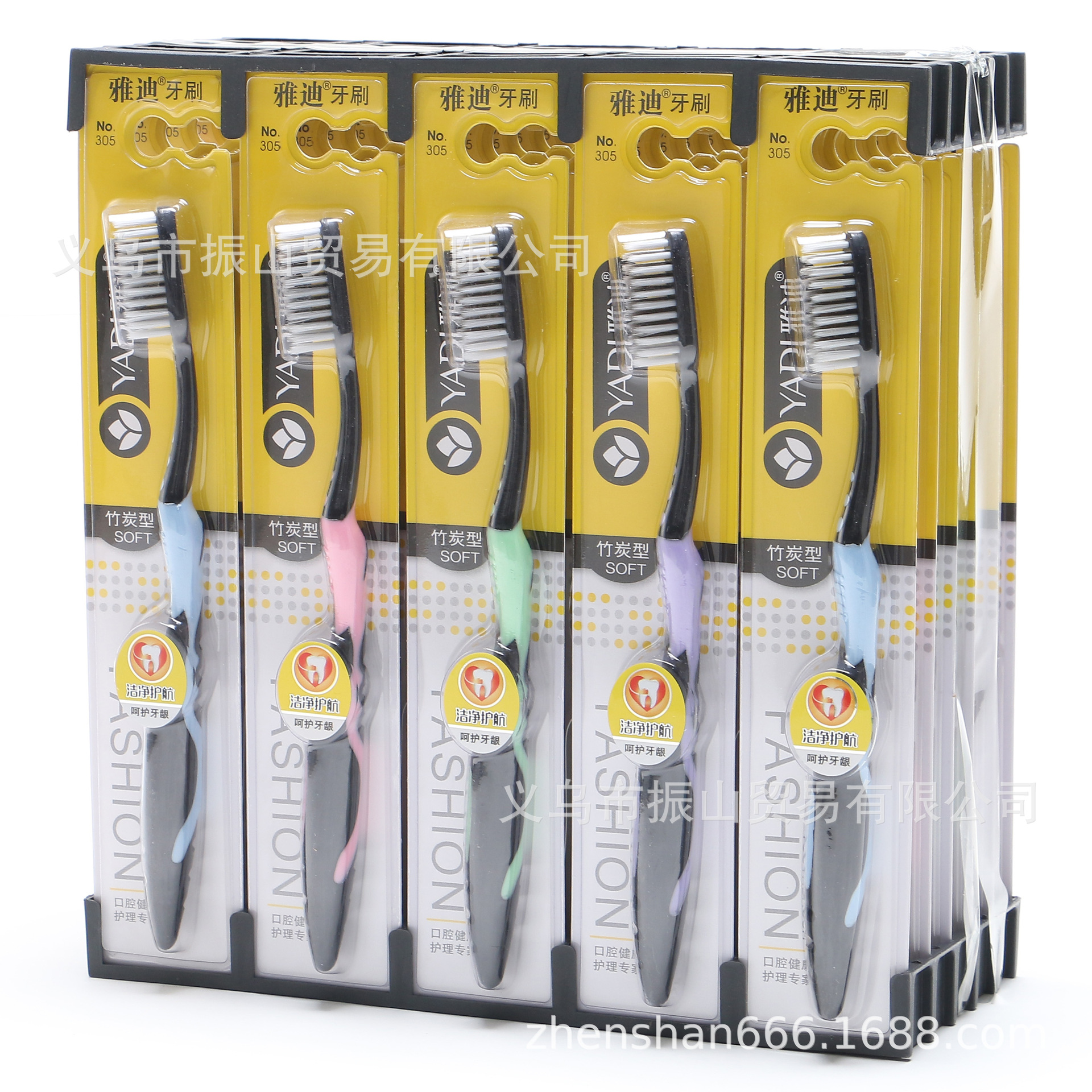 雅迪305 舒适防滑刷柄 竹炭细丝软刷毛牙刷