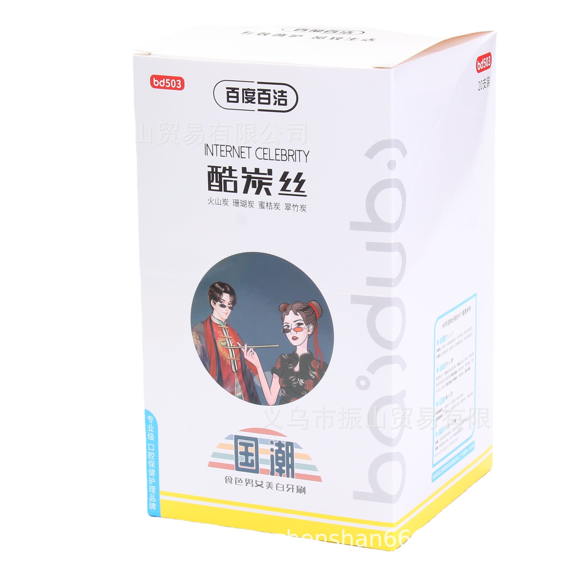 百度百洁503 爆赞网红系列食色男女美白珊瑚炭软毛牙刷现货供应