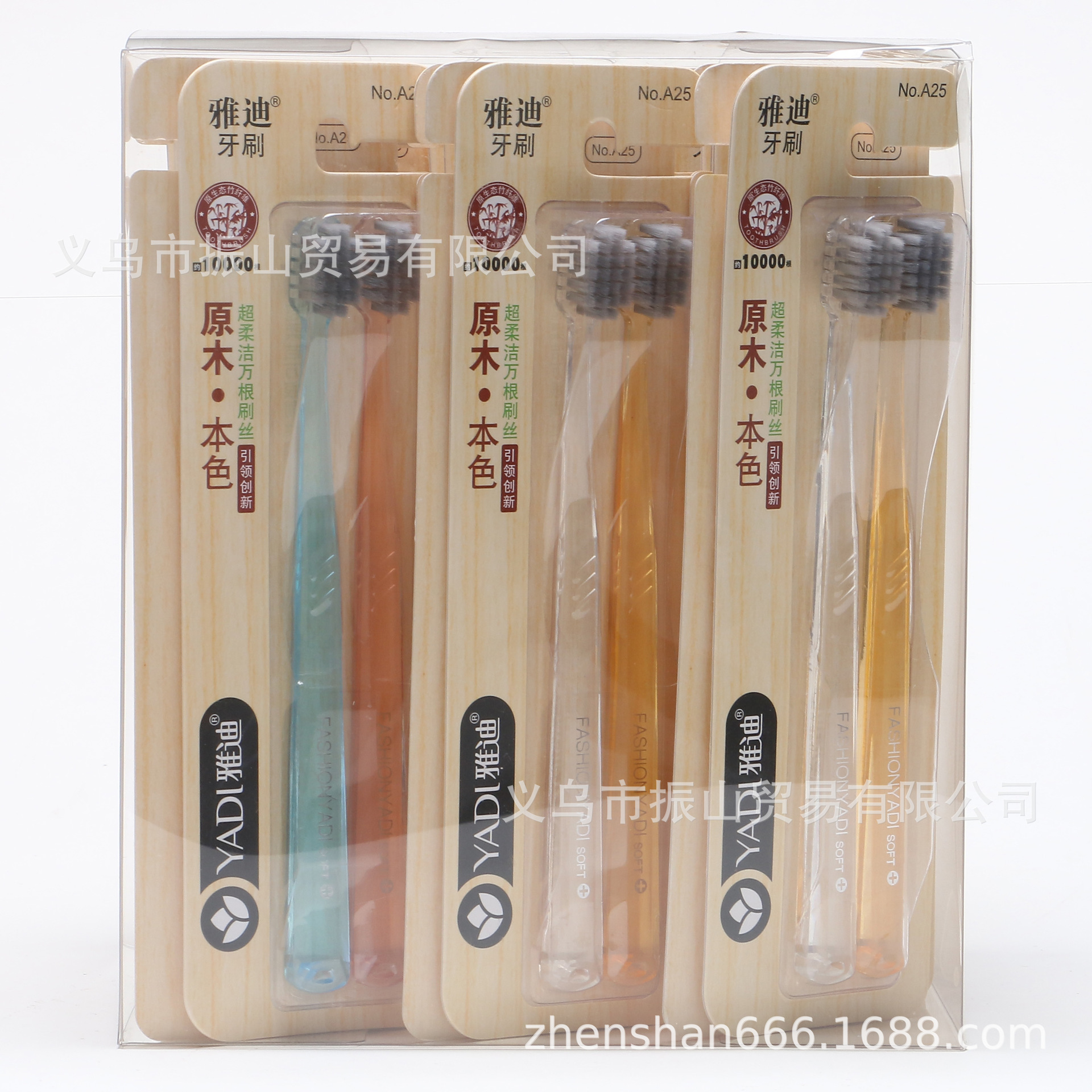 雅迪A25 双面纸卡原木本色柔洁万根刷丝轻奢炭软毛情侣装牙刷