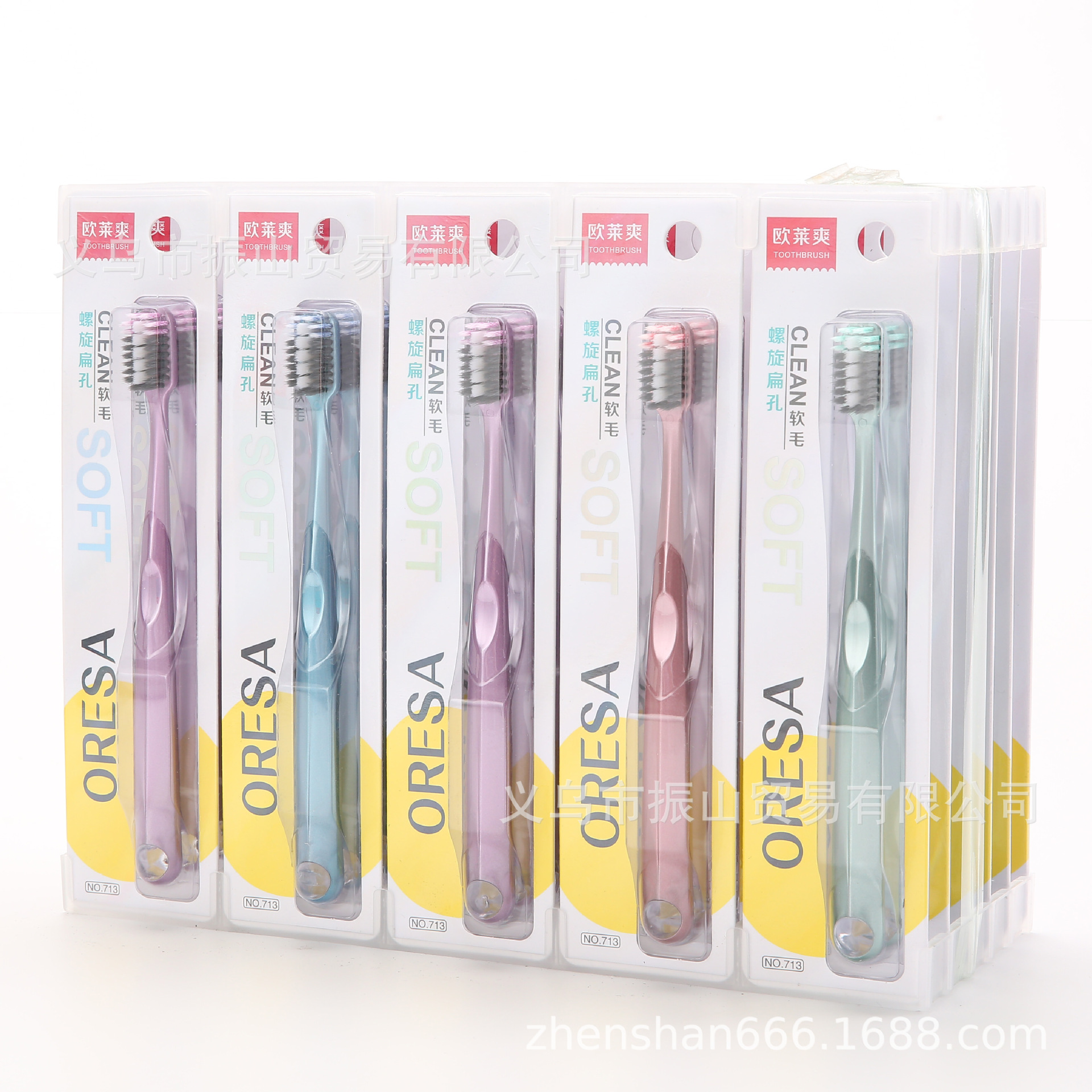 欧莱爽713 双面纸卡 螺旋扁孔竹炭软毛牙刷