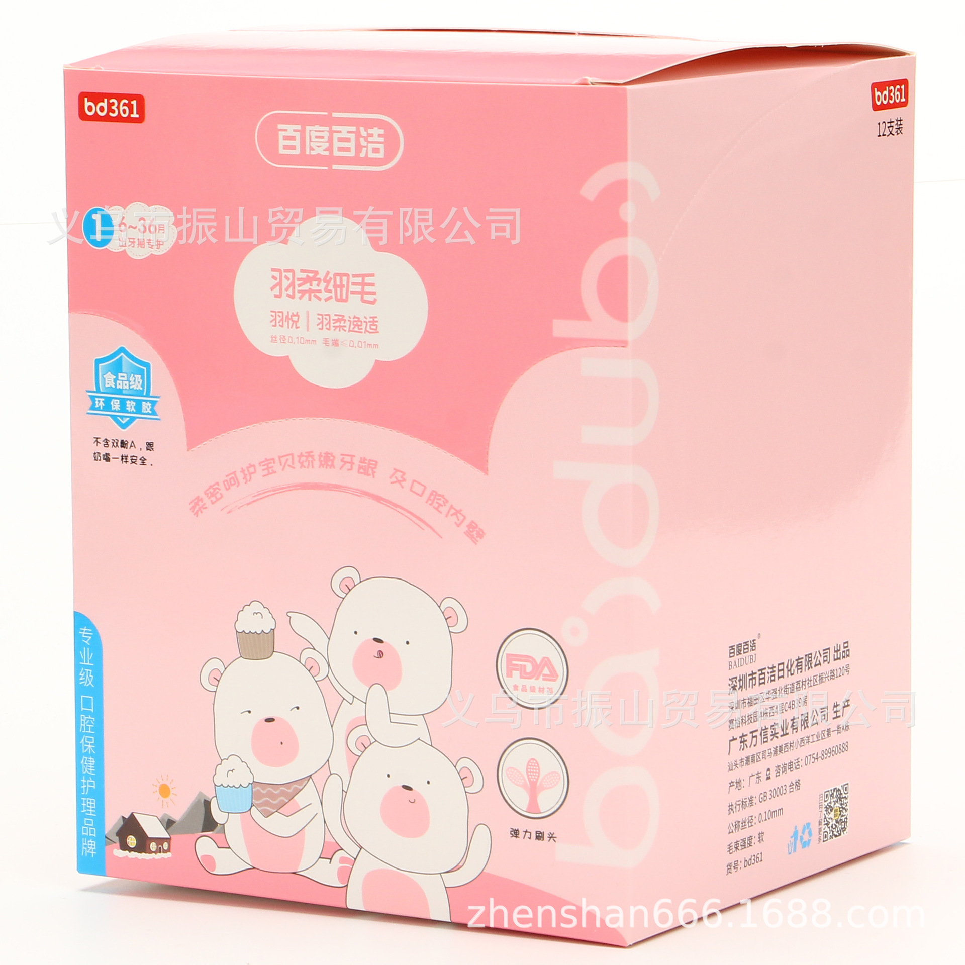 百度百洁361 羽悦逸适食品级环保软胶毛端0.01mm6-36宝宝个月牙刷