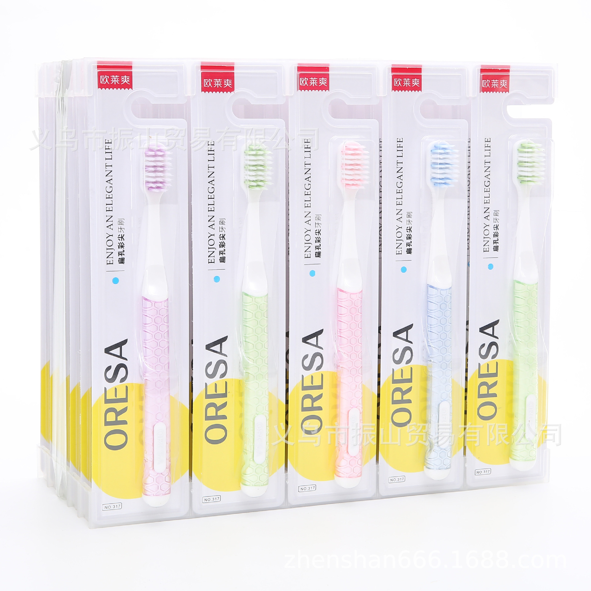 欧莱爽317 舒适瓷感手柄 扁孔彩尖软毛牙刷