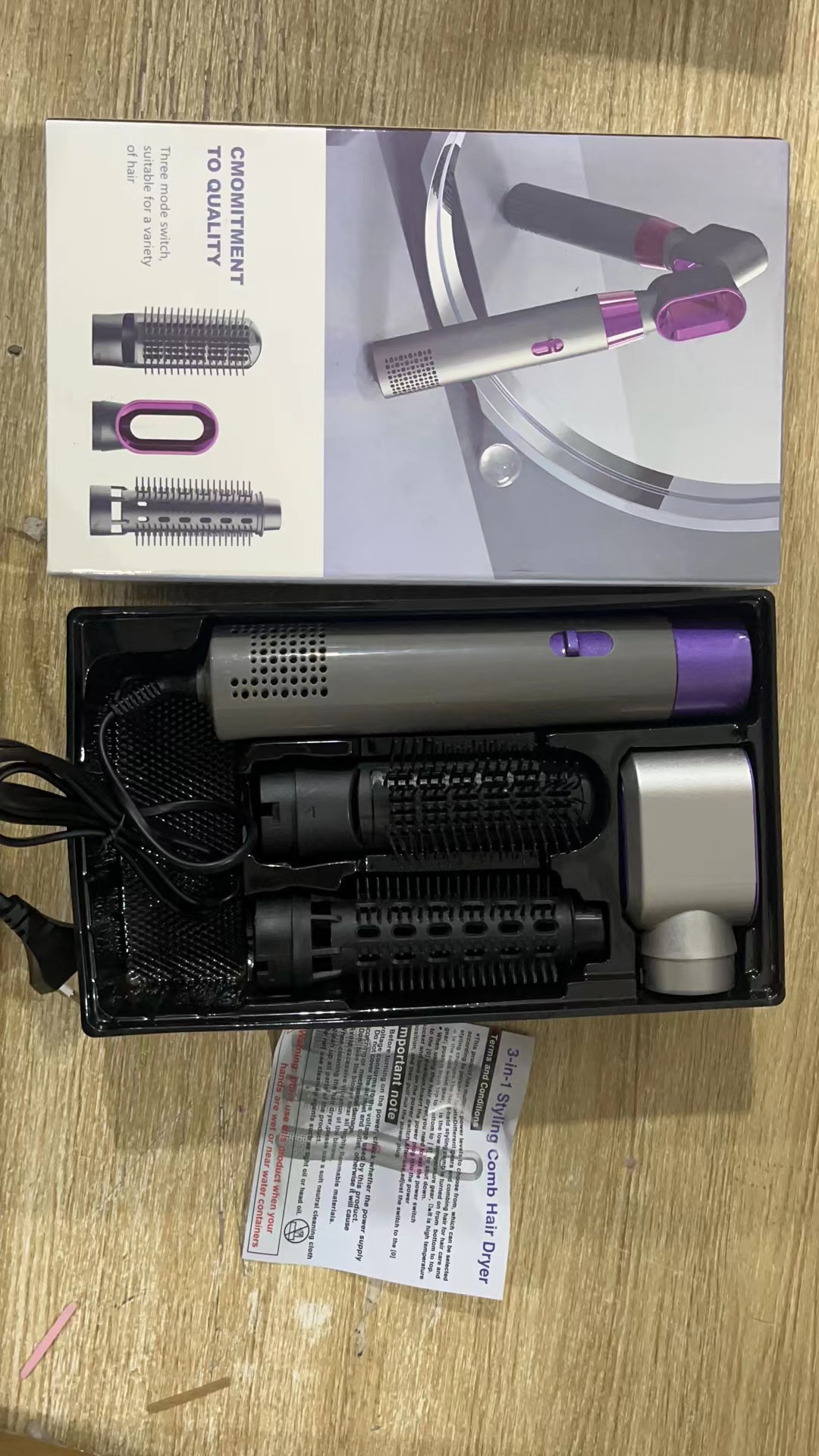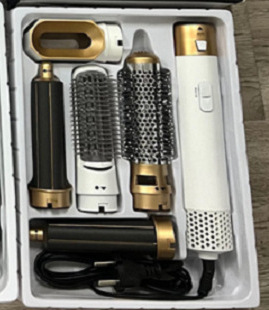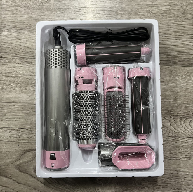 亚马逊跨境卷发棒五合一热风梳吹风梳卷发器直发梳吹风机自动吸发