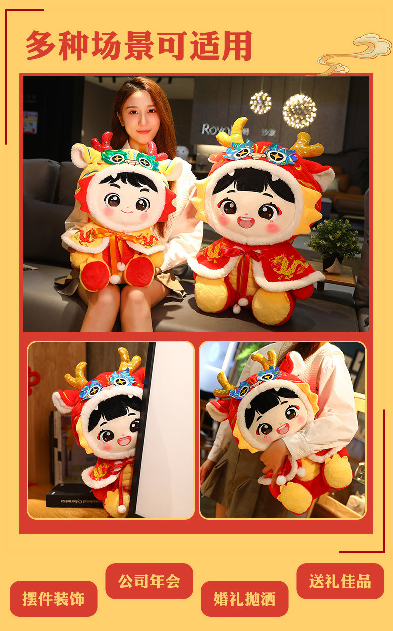 2024龙年吉祥物仿真龙中国龙喜庆醒狮龙年生肖龙毛绒玩具摆件