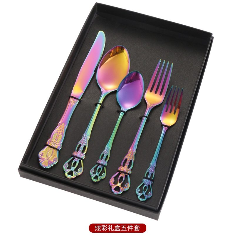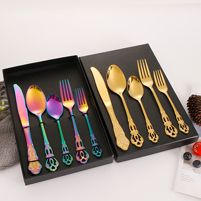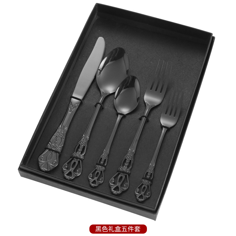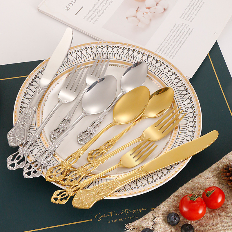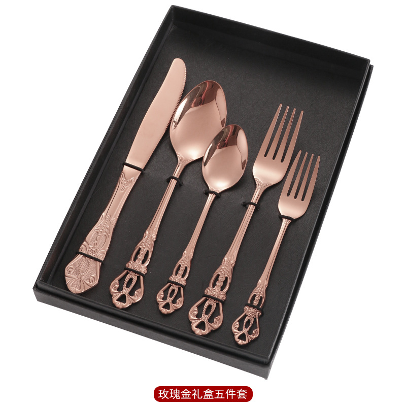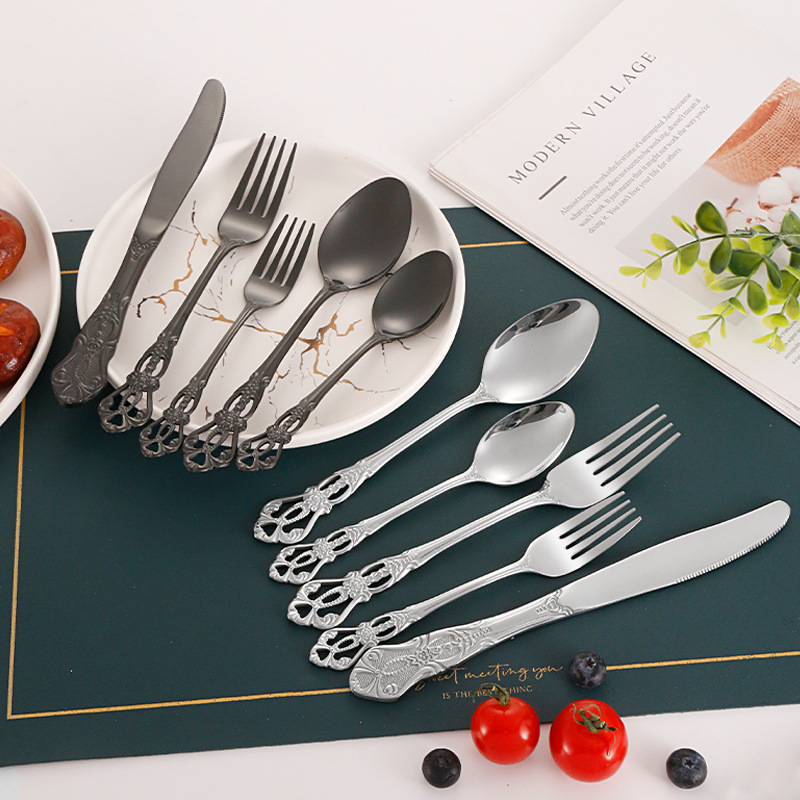 410不锈钢皇庭镂空浮雕复古餐具5件套创意酒店西餐厅牛排刀叉勺