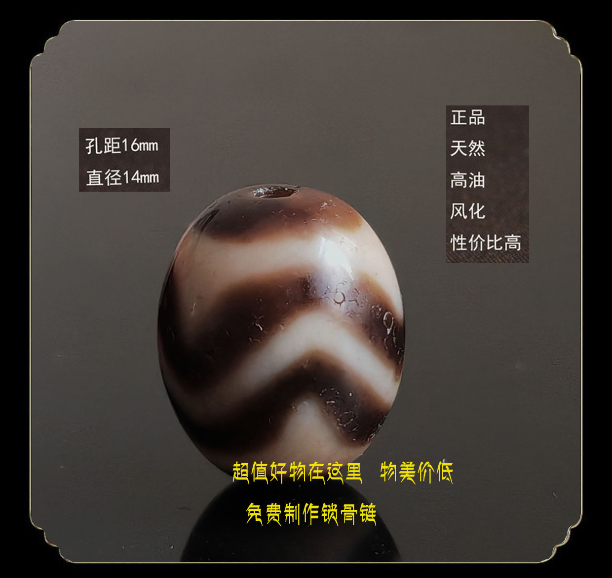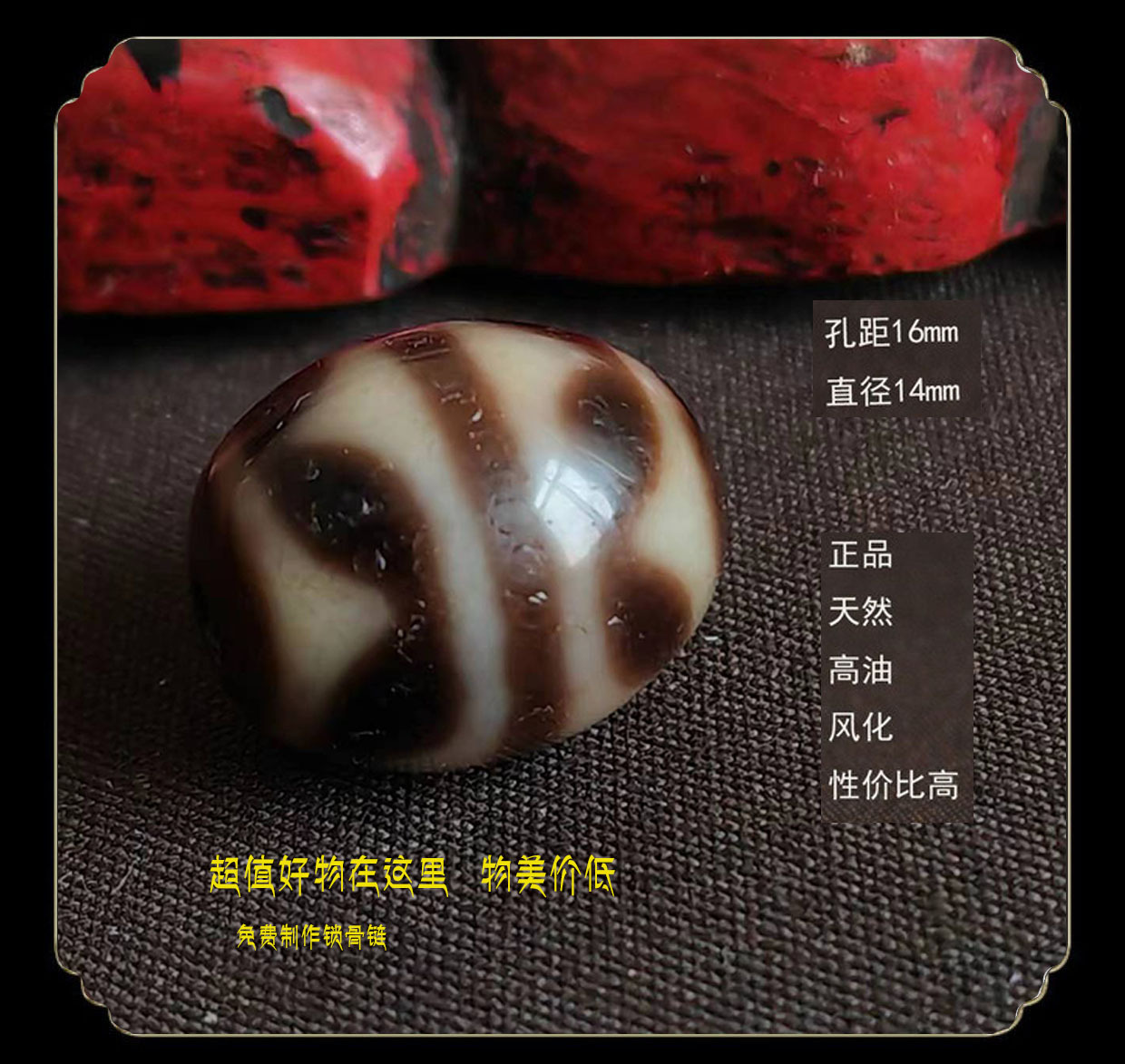 西藏达洛天珠风化宝瓶水纹莲花虎牙天珠散珠锁骨手链吊坠佛珠配
