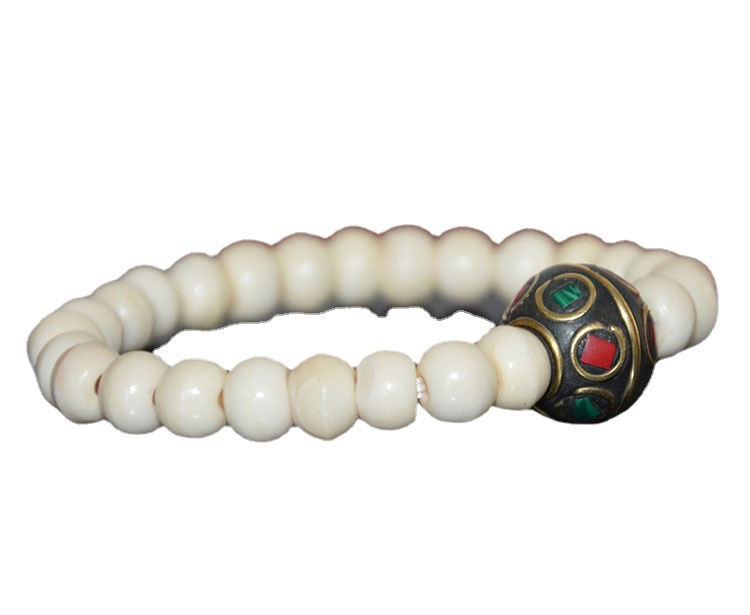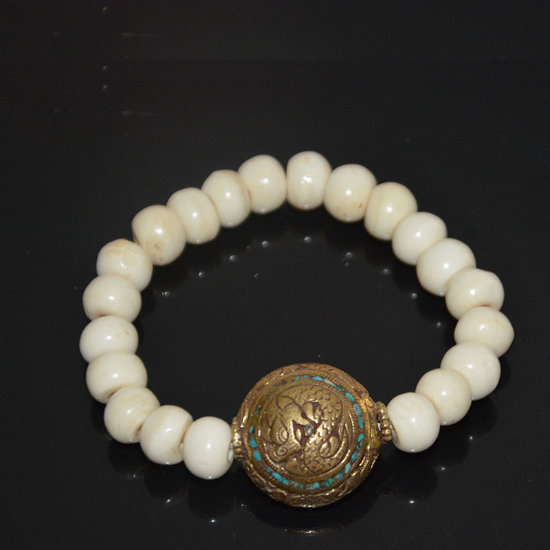 西藏拉萨饰品牦牛骨手链绿松石铜珠手串民族风原创设计尼泊尔手工