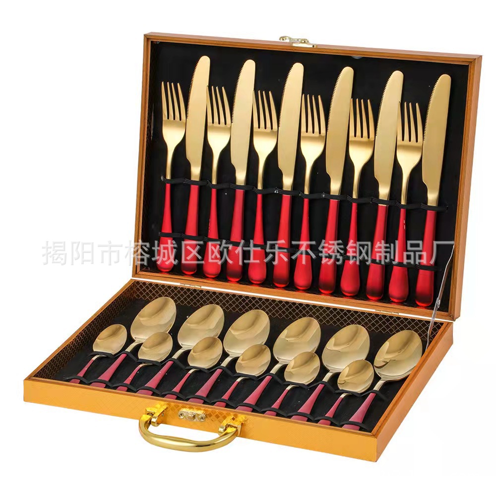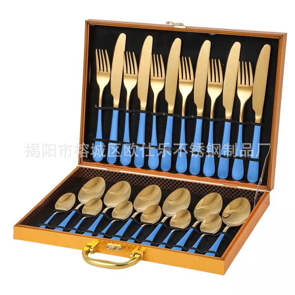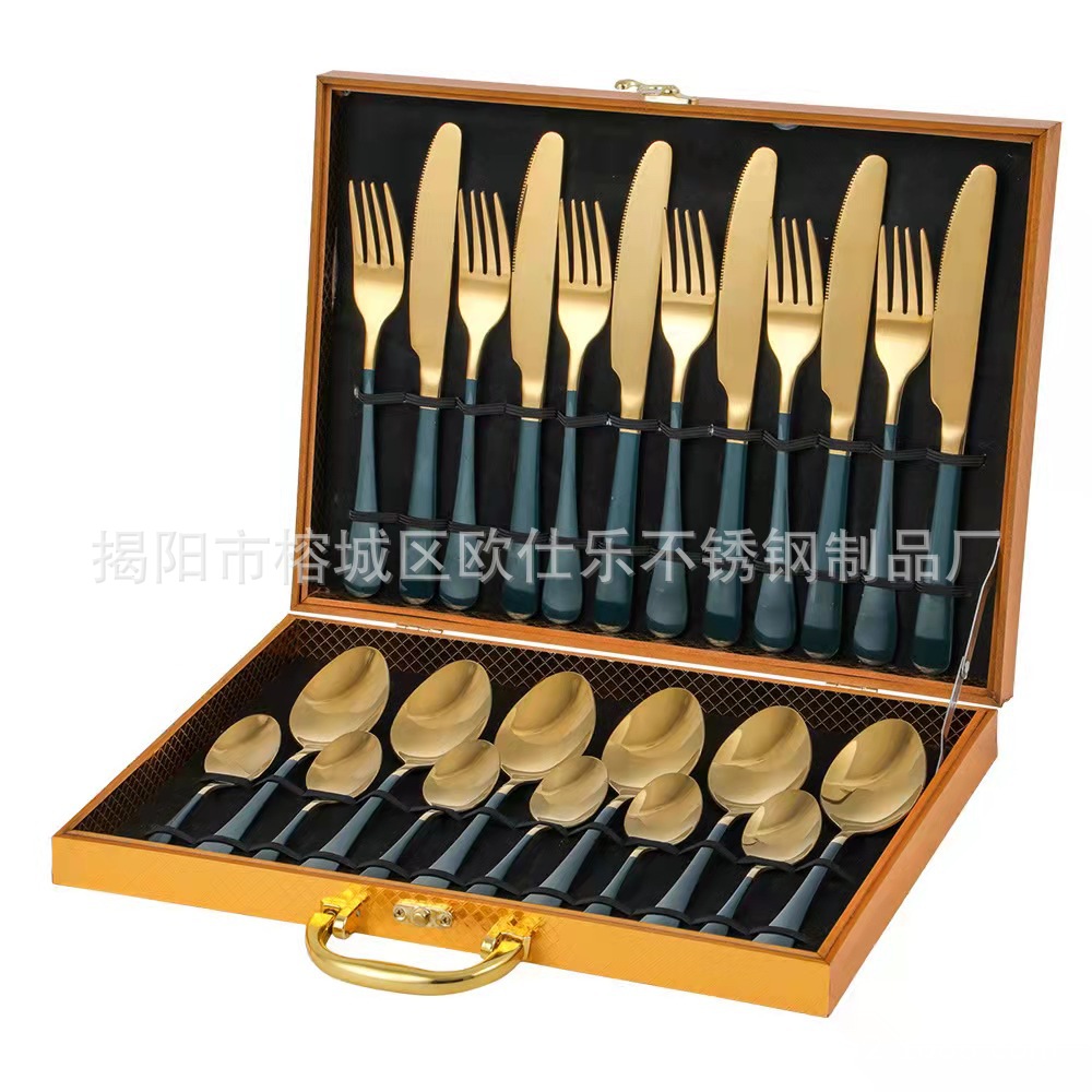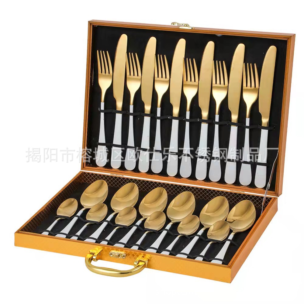 亚马逊爆款产品不锈钢餐具24件套装1010四主件刀叉勺跨境木盒套装