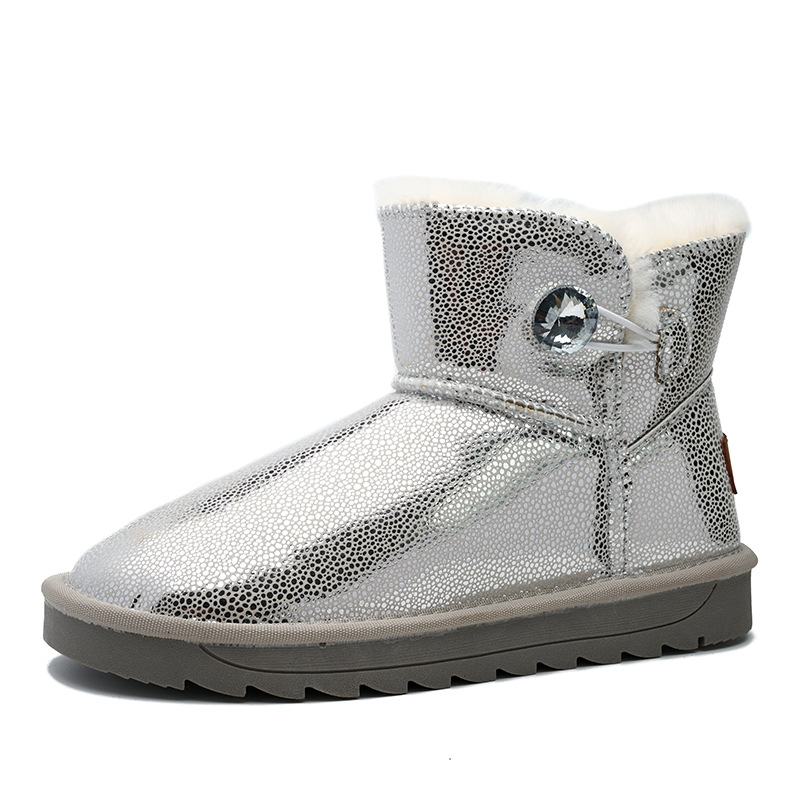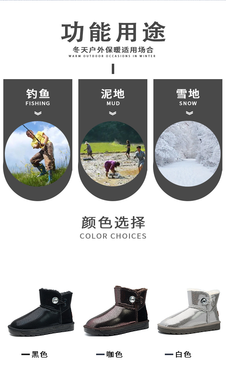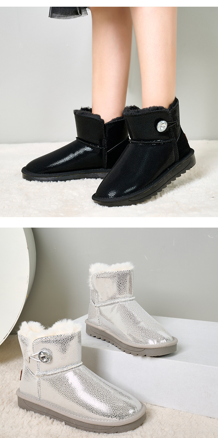 雪地靴女鞋2023年冬季新款棉鞋女加绒加厚保暖中帮亮面平底雪地鞋