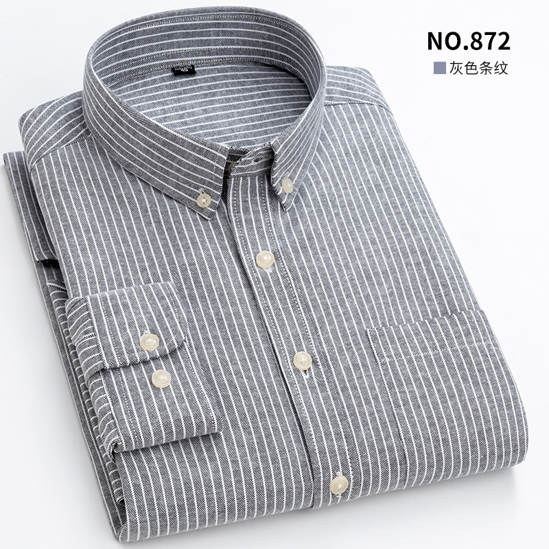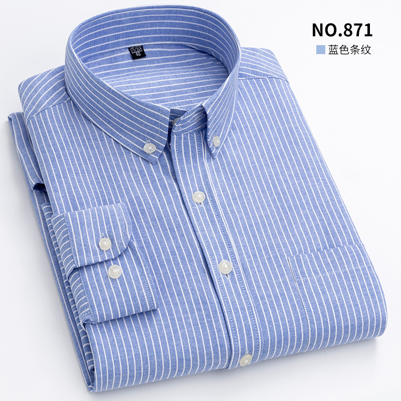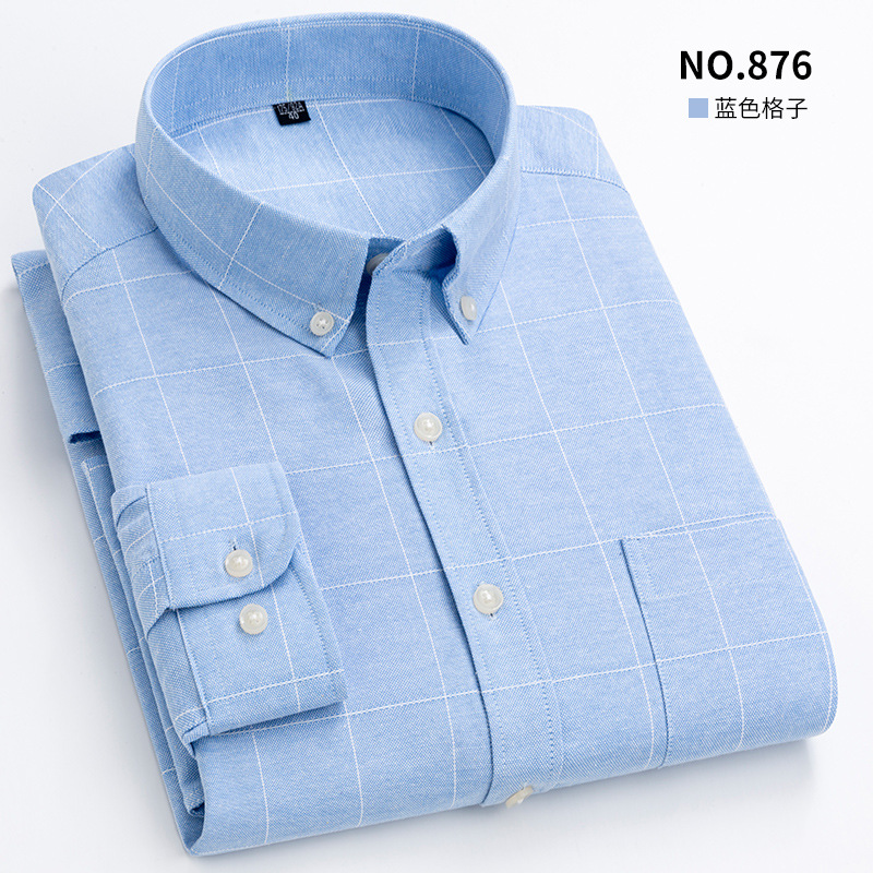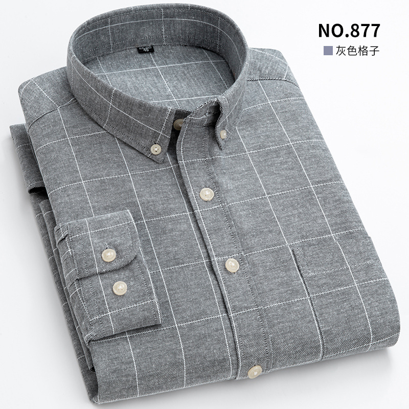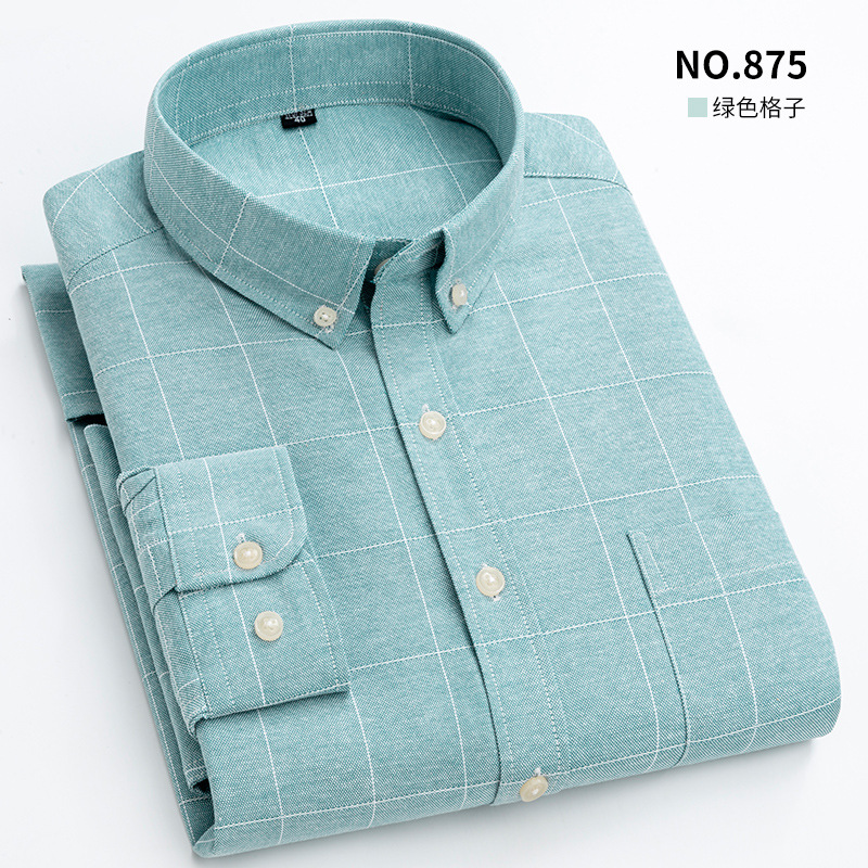 高棉免烫休闲牛津纺男士长袖衬衫抗皱免打理韩版修身格子条纹衬衣