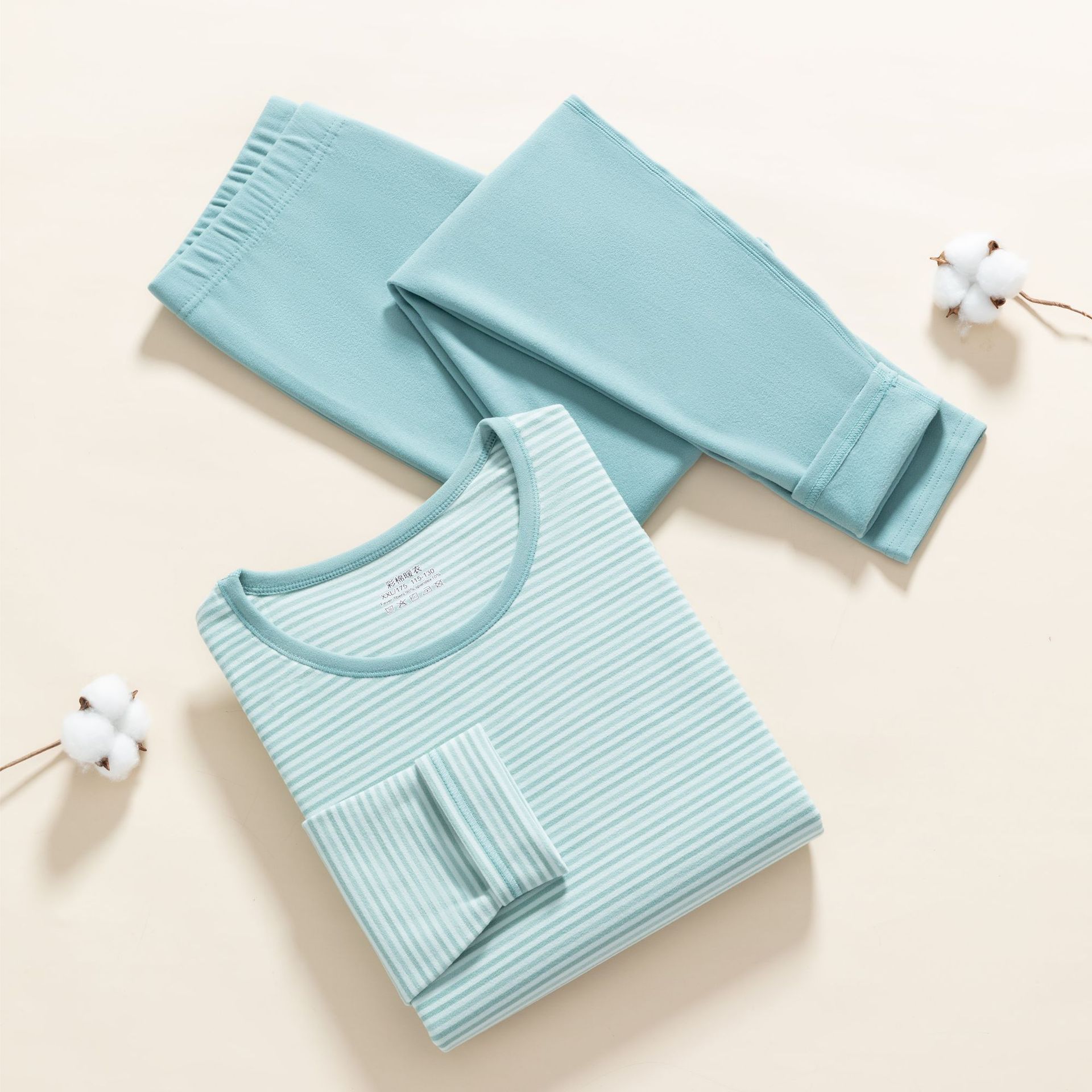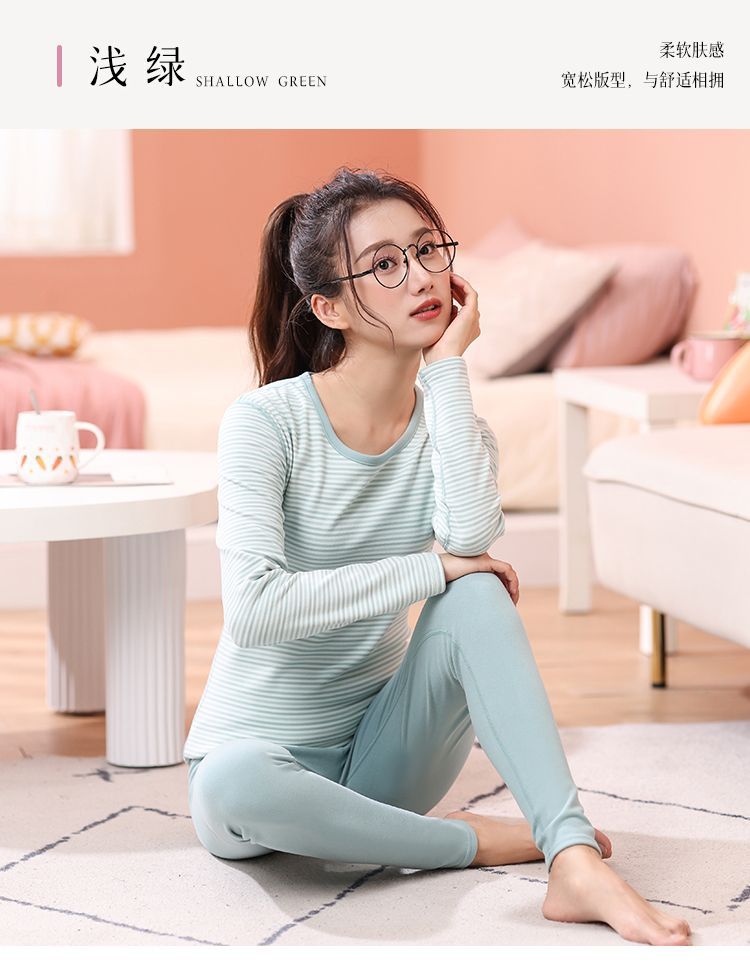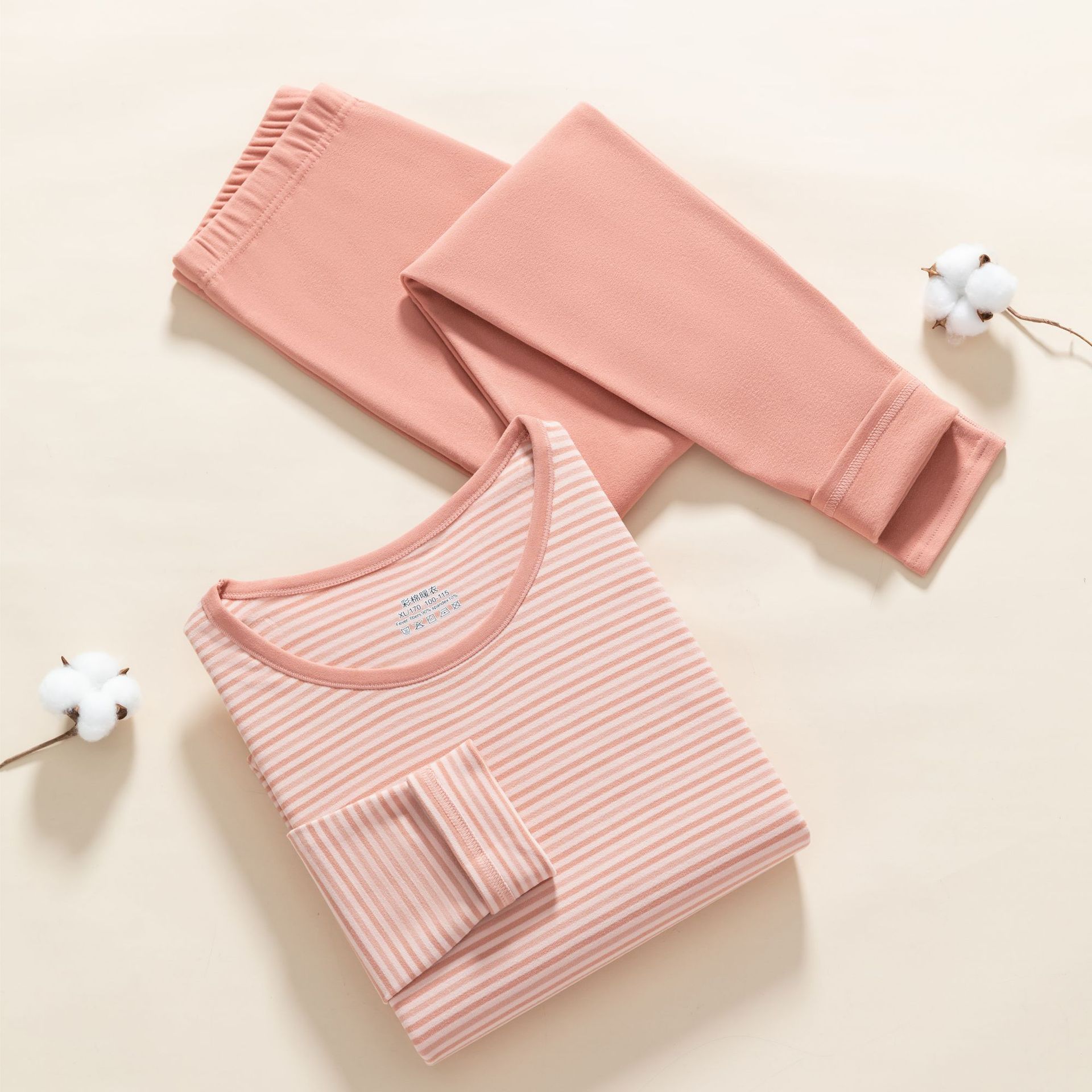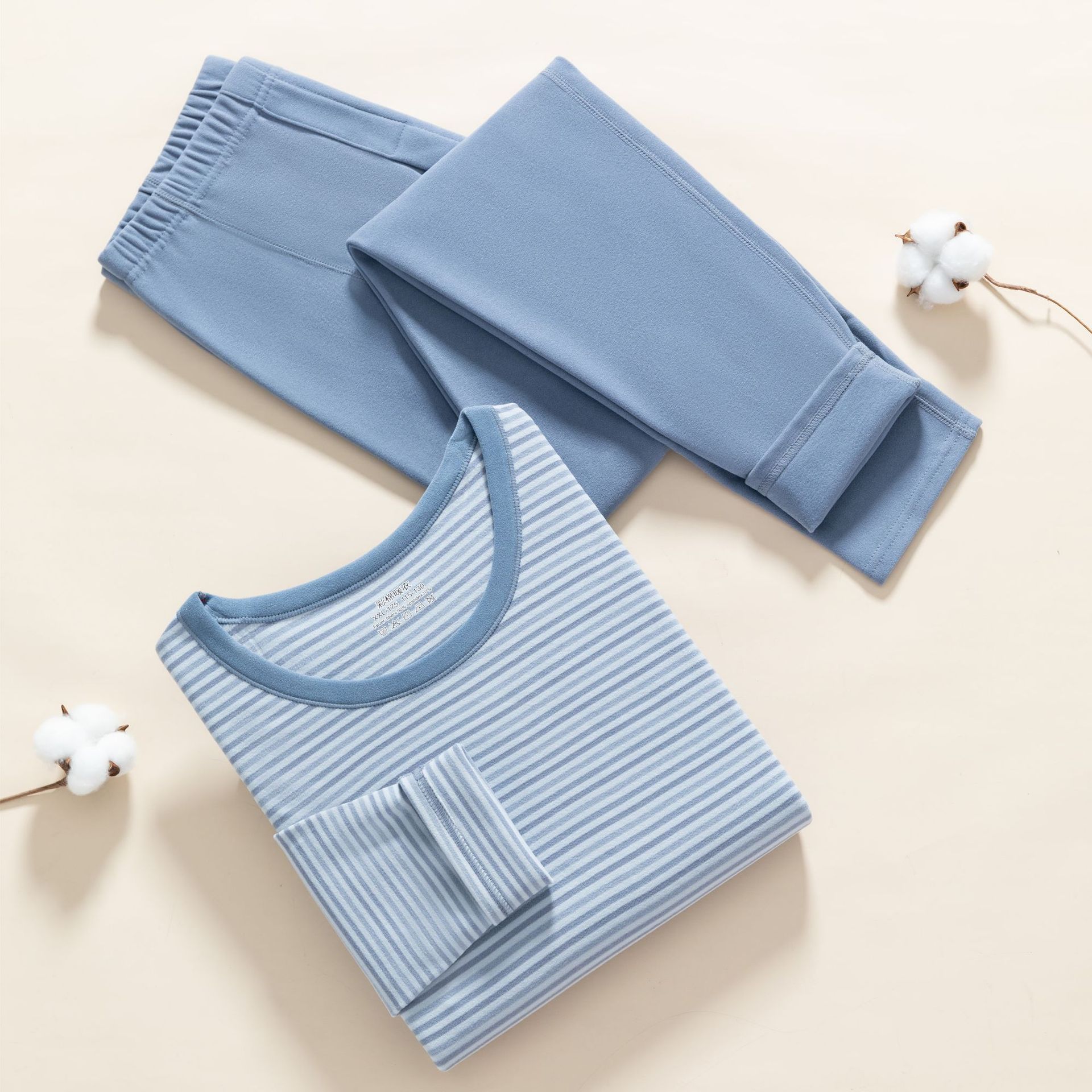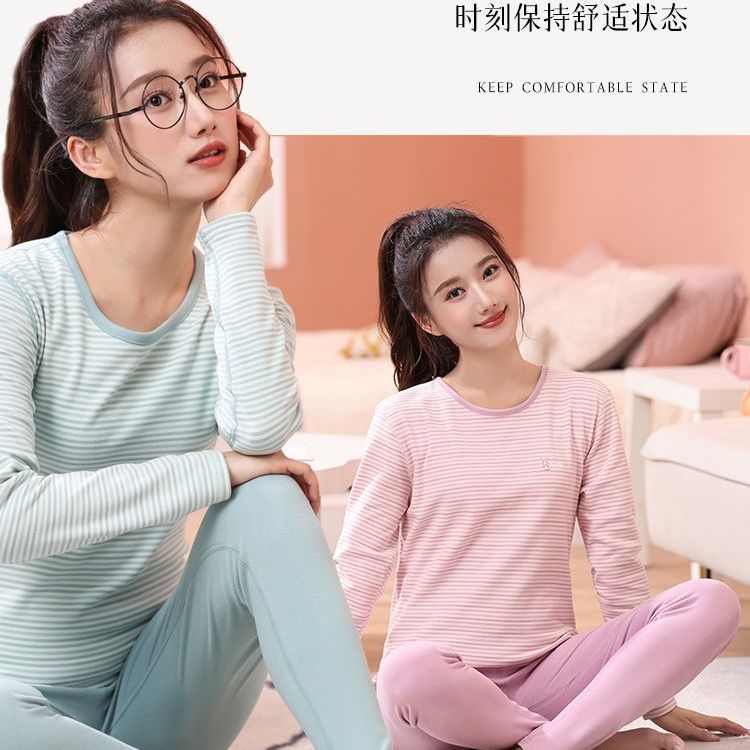 青少年彩棉 条纹少男少女初高中学生保暖打底内衣睡衣秋衣秋裤套