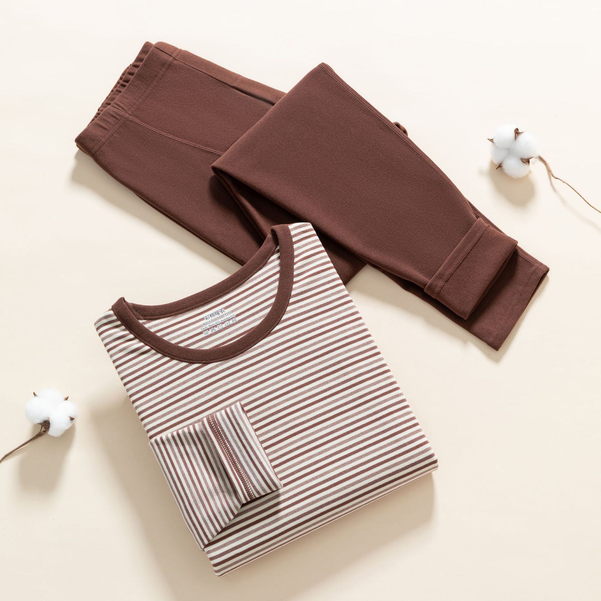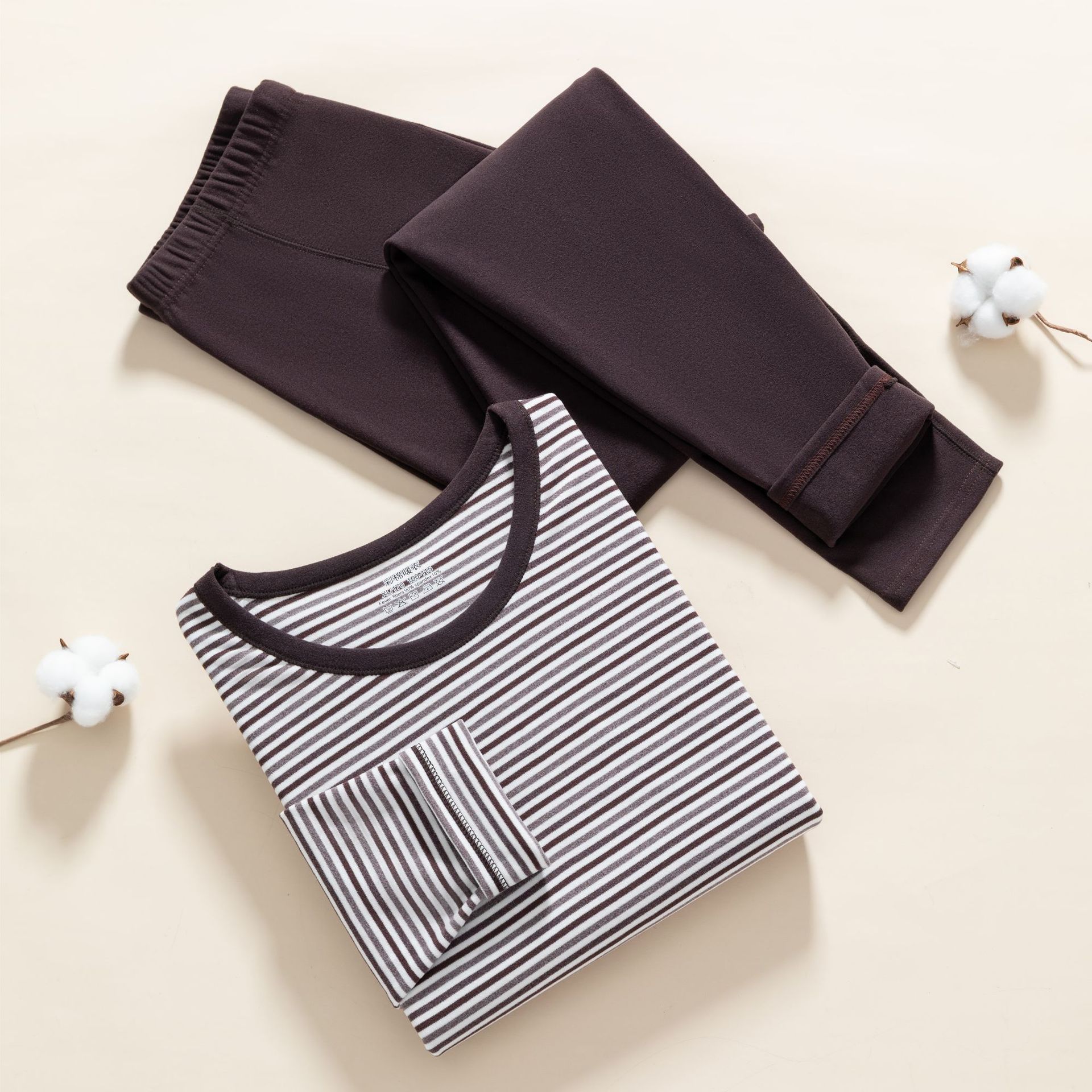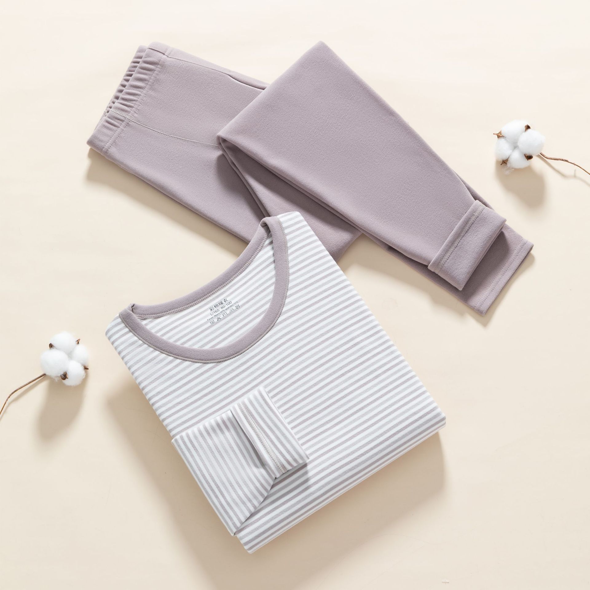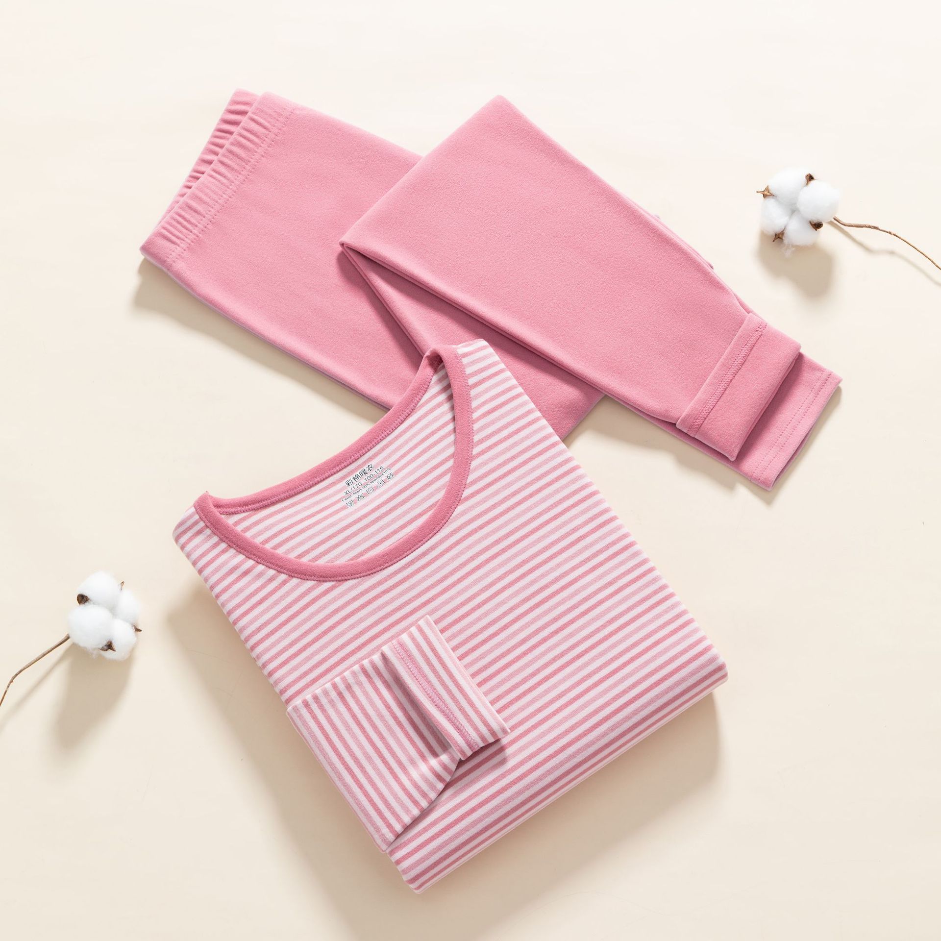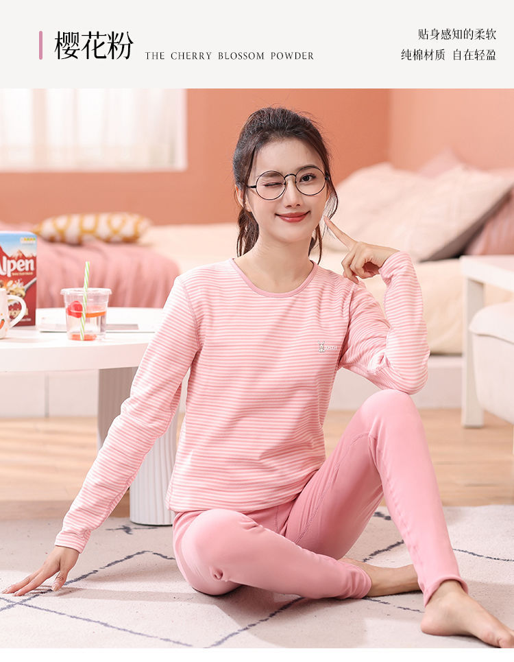 青少年彩棉 条纹少男少女初高中学生保暖打底内衣睡衣秋衣秋裤套
