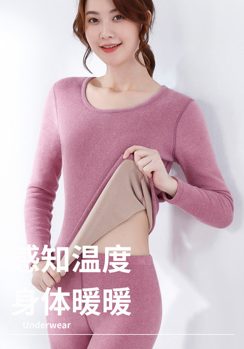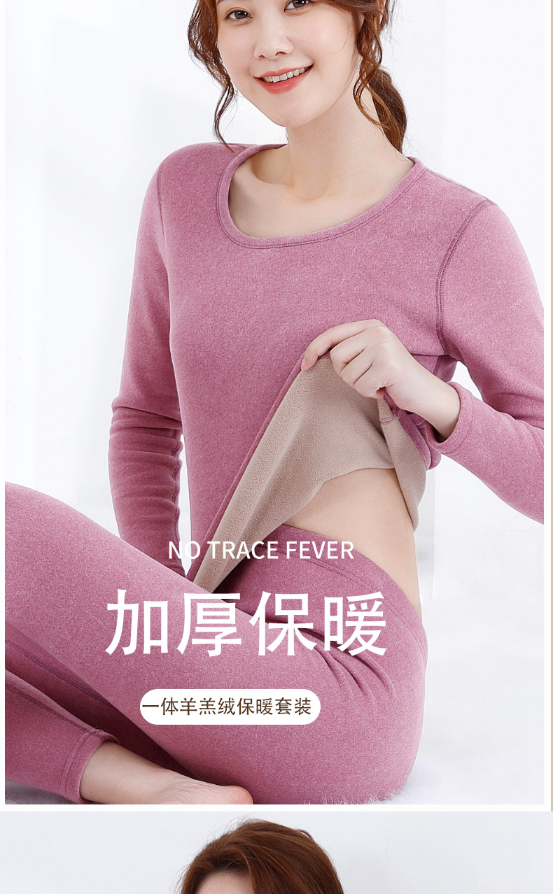 800g驼绒保暖内衣女自发热加厚加绒羊羔绒发热秋衣秋裤德绒套装