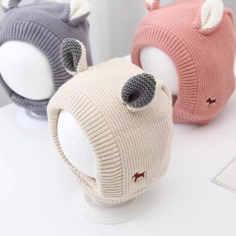 儿童帽子冬季加绒加厚男女宝宝帽子可爱耳朵护耳毛线帽婴儿帽子韩