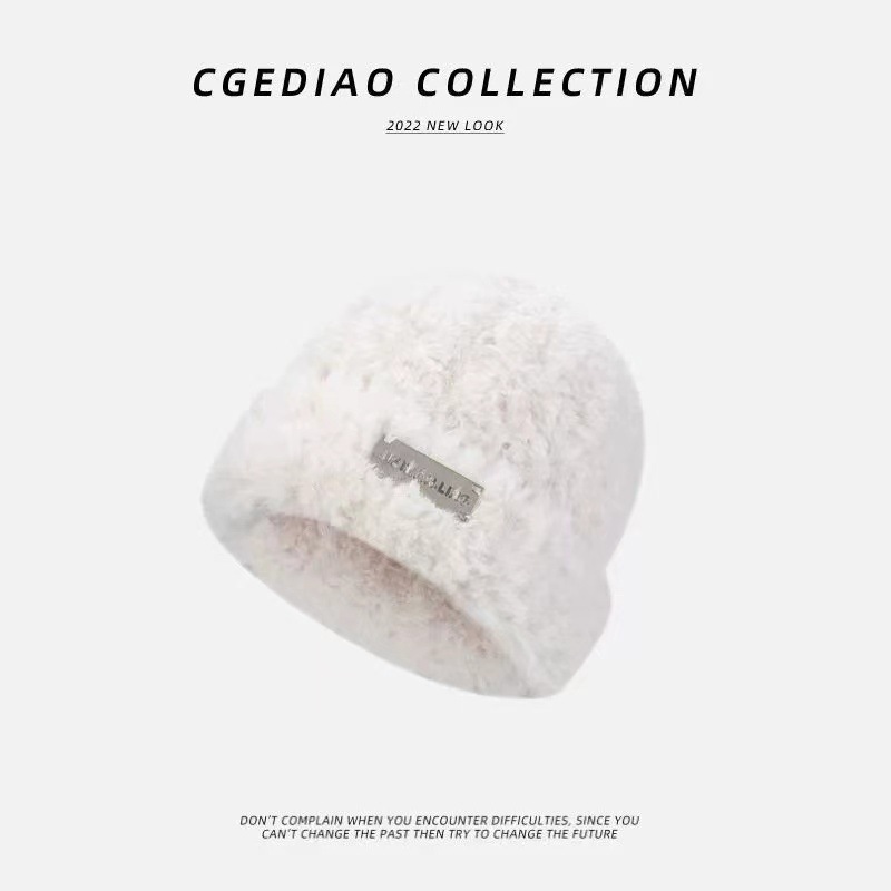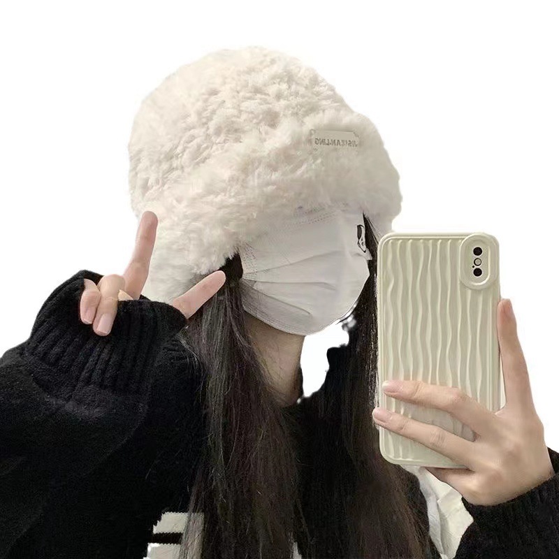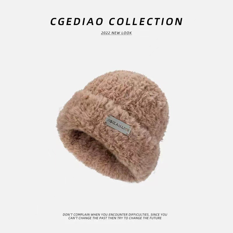 帽子女新款毛线帽秋冬季包头冷帽毛绒帽大头围渔夫帽保暖针织帽子