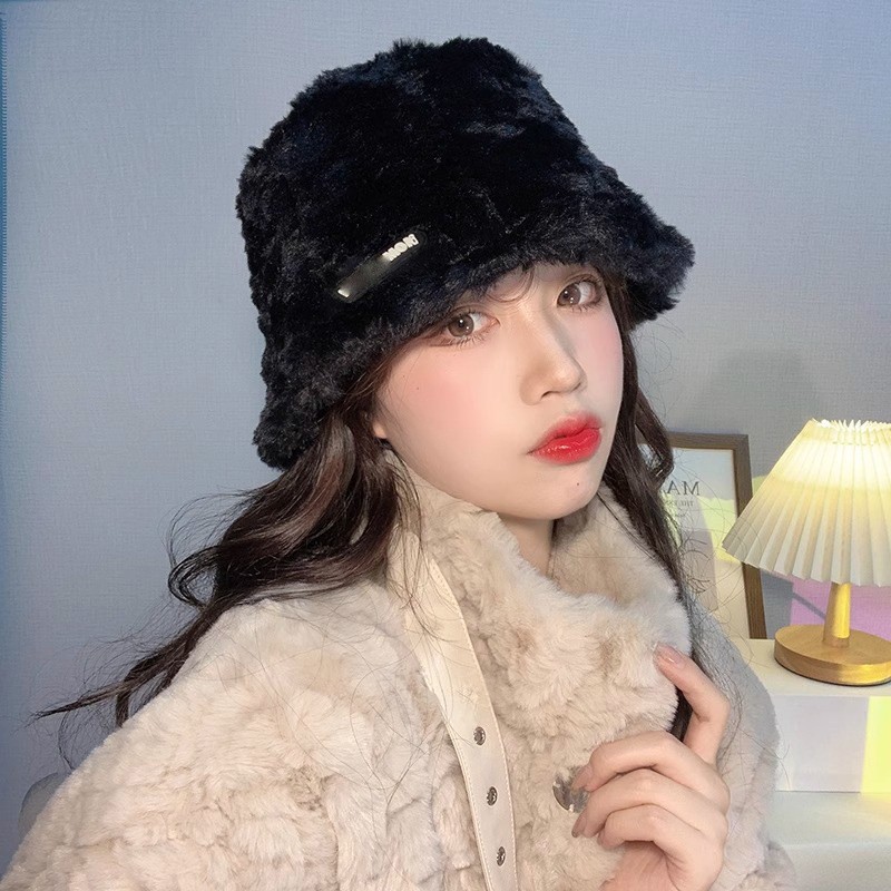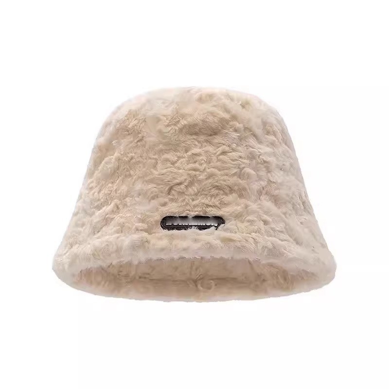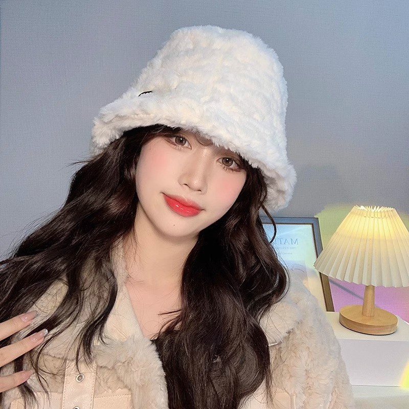 白色羊羔毛渔夫帽子女秋冬日系百搭显脸小冬季加厚保暖毛绒盆帽潮