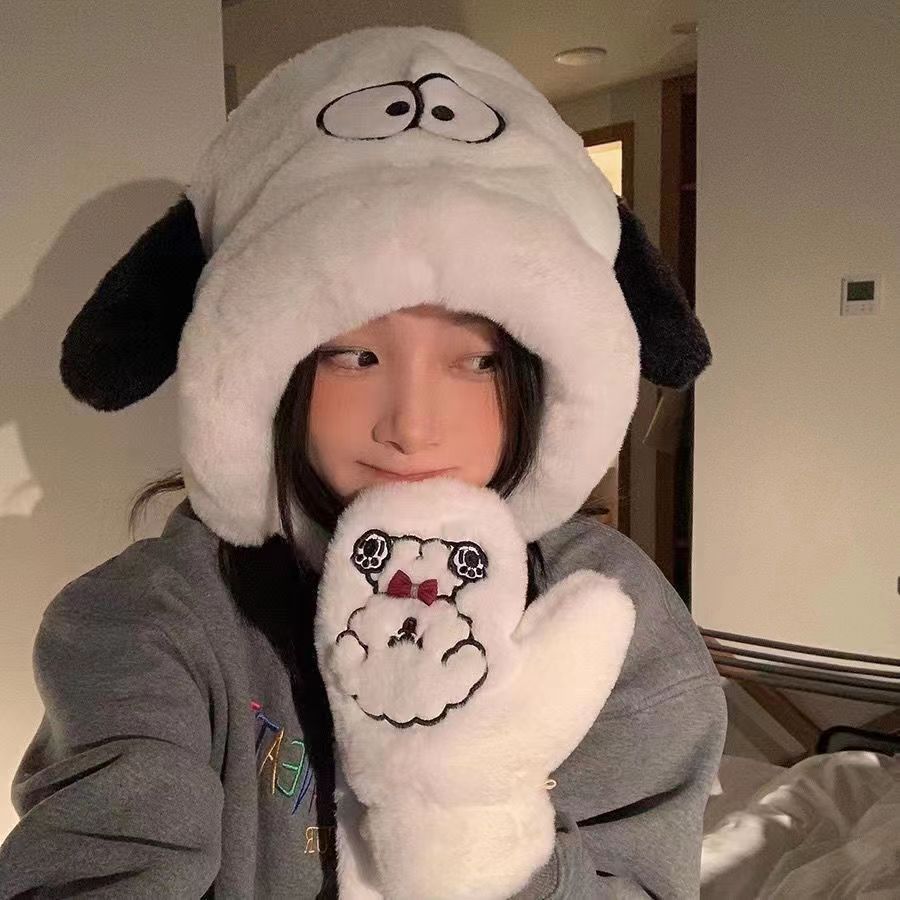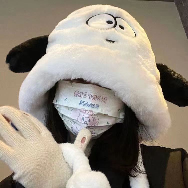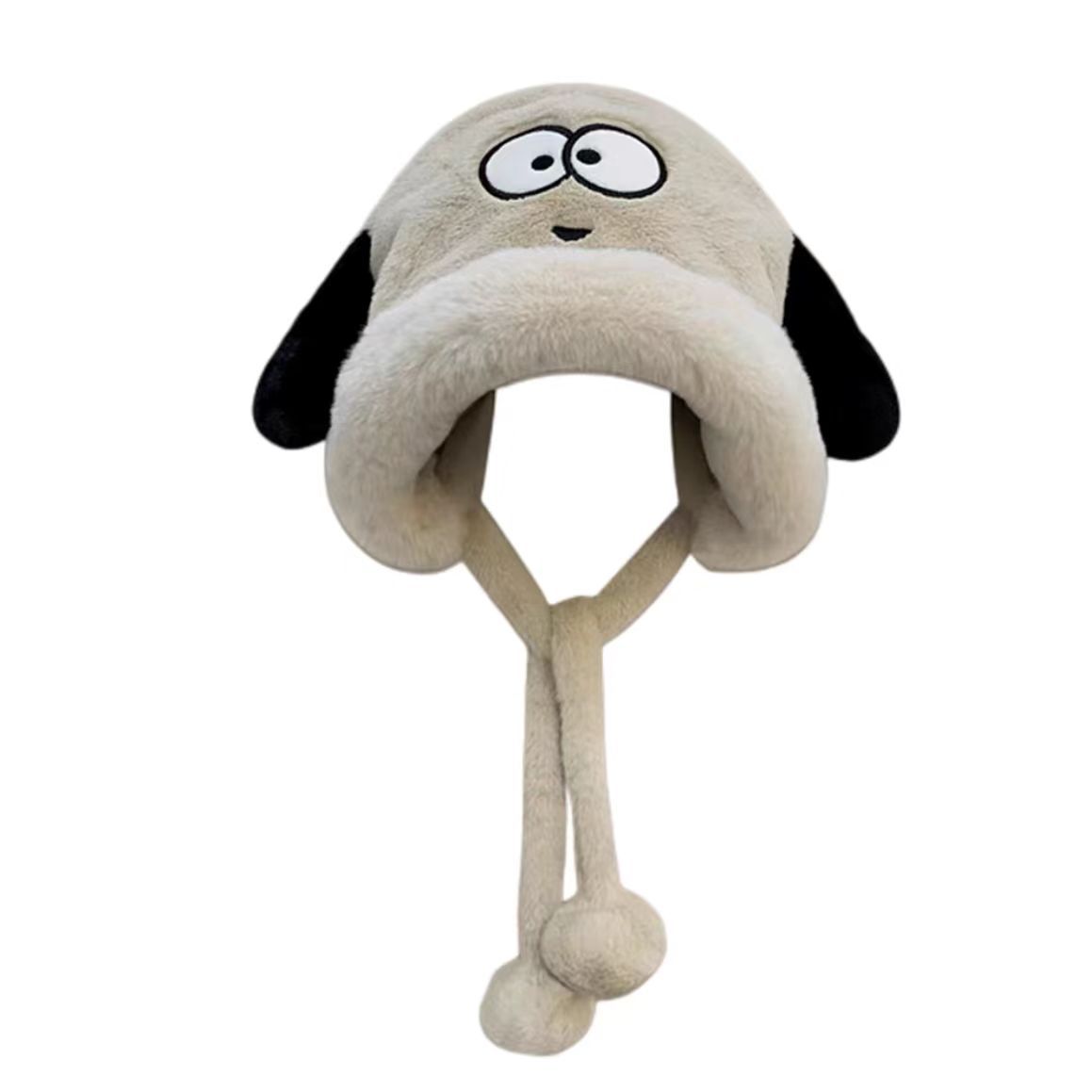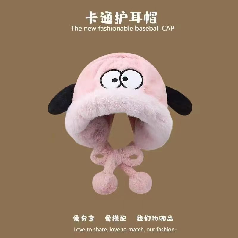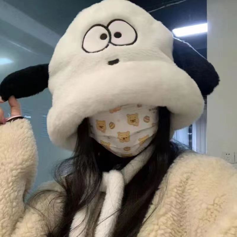 2023可爱卡通小狗毛绒帽子女萌保暖护耳秋冬帽加厚围脖雷锋帽
